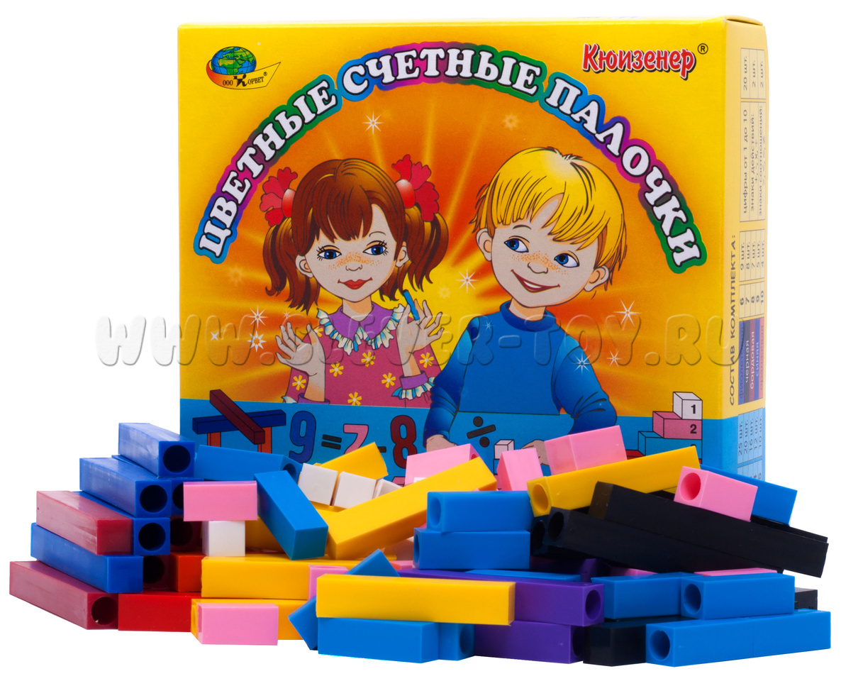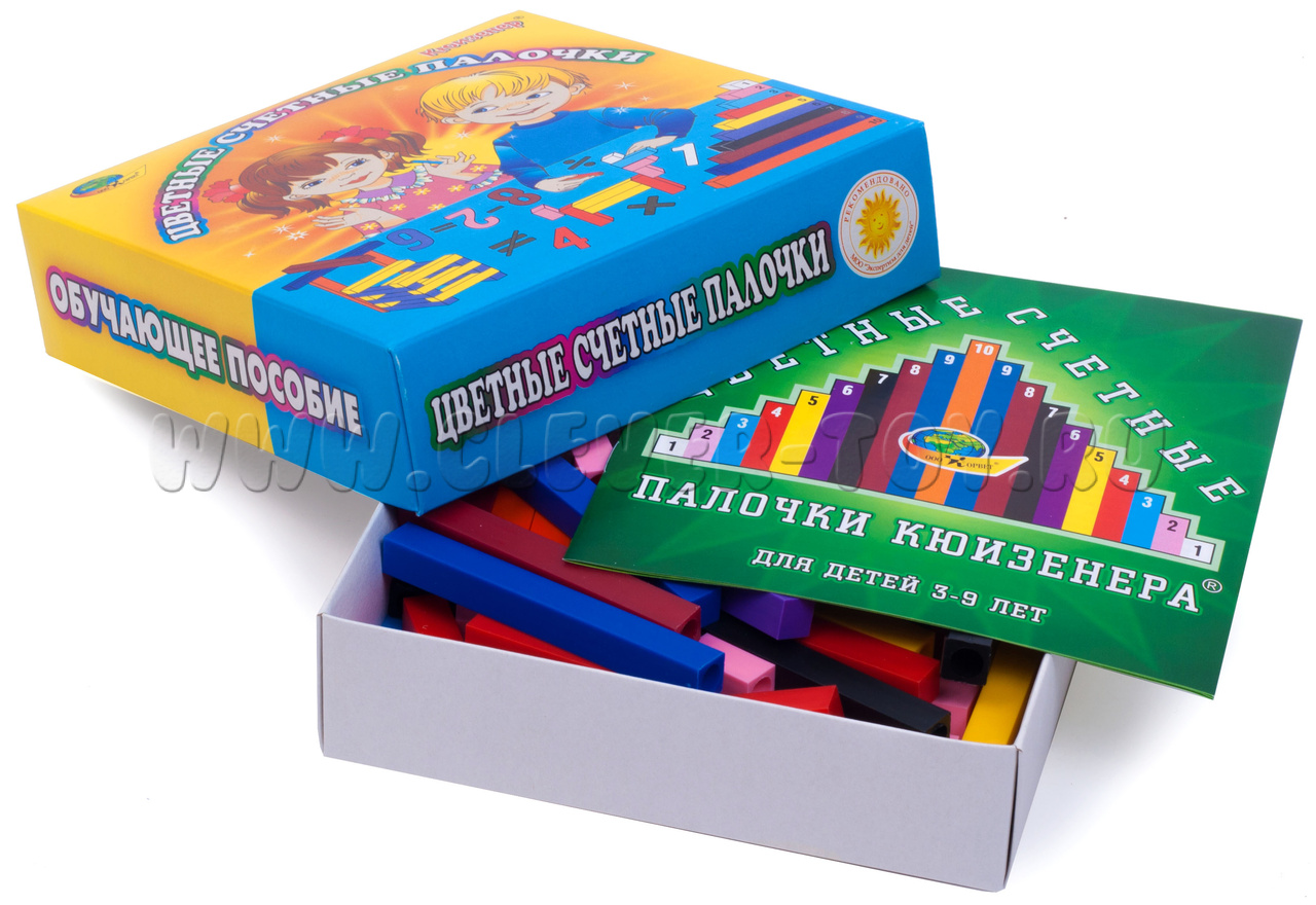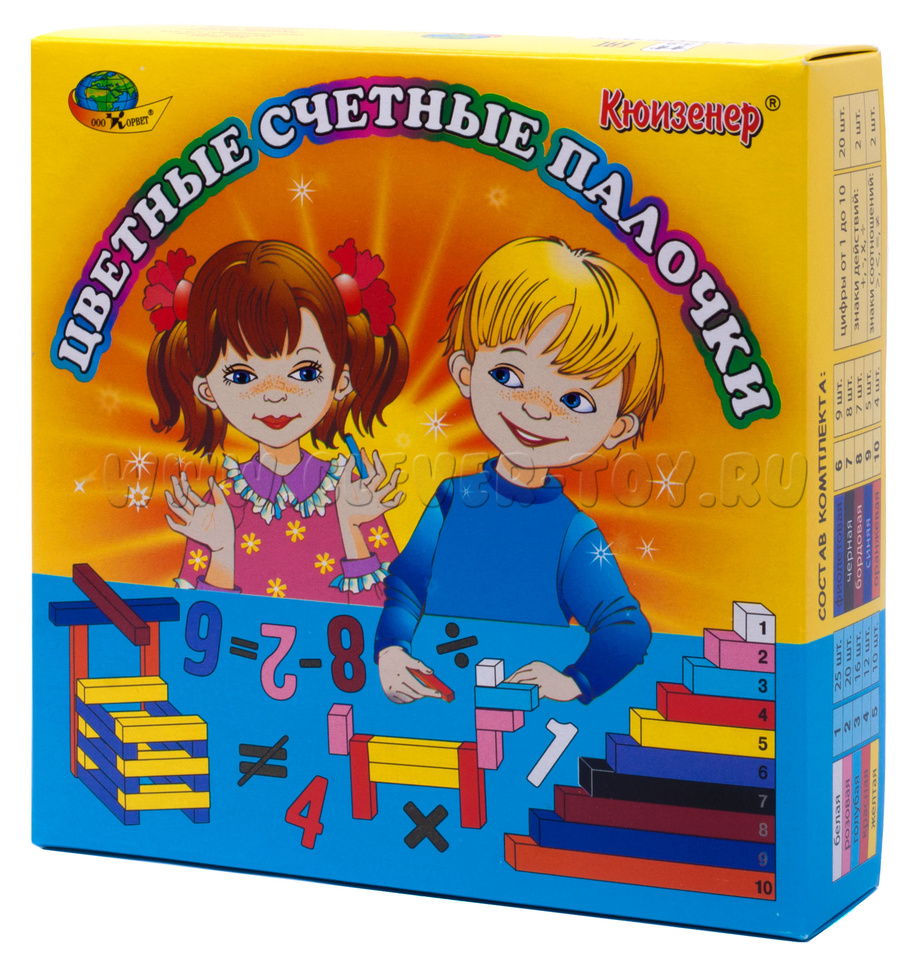 В комплекте: счетные палочки Кюизенера, брошюра для ознакомления с основными принципами методики.