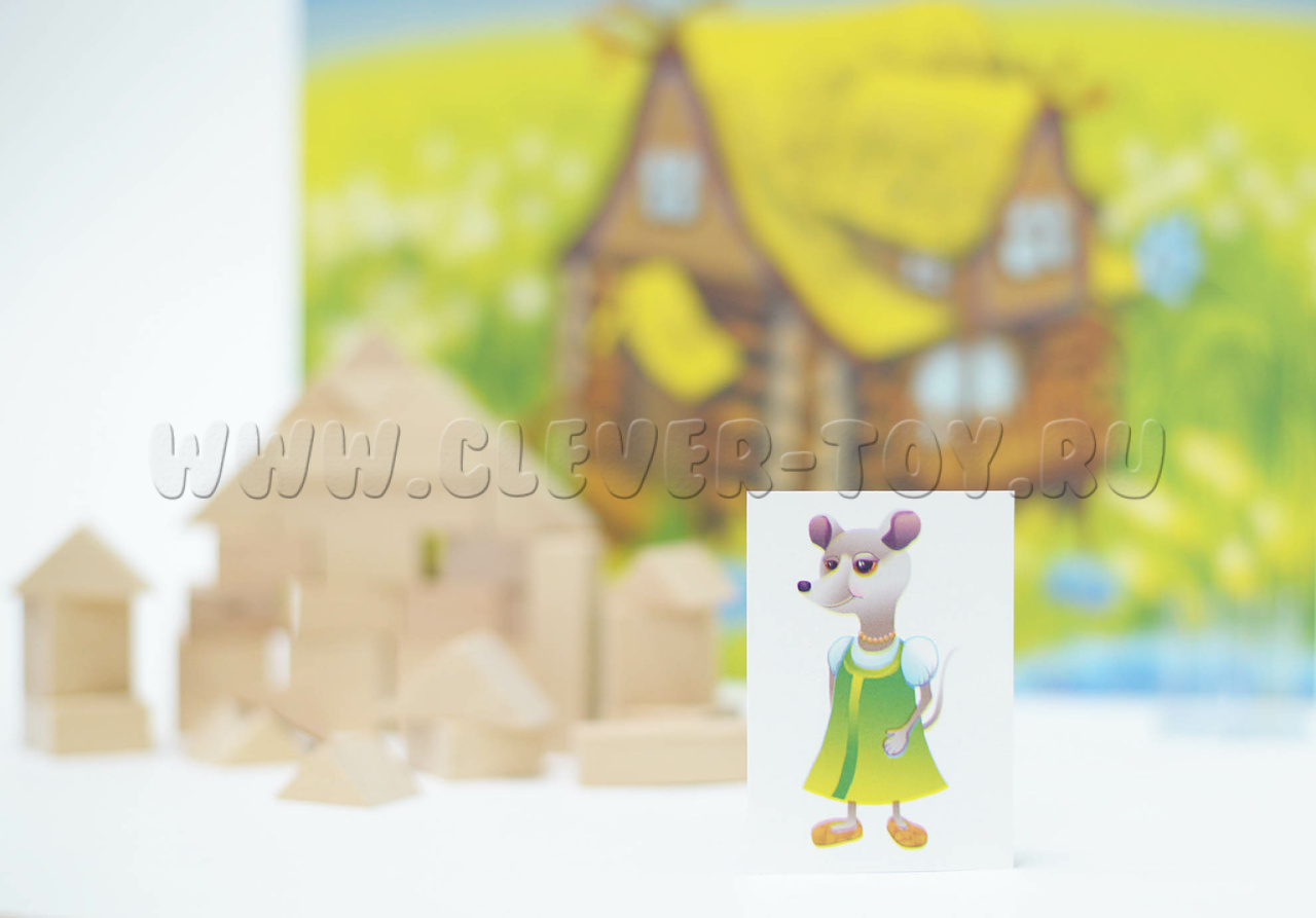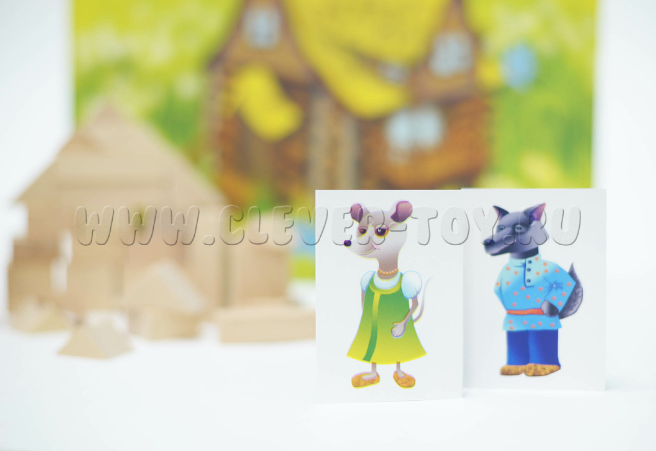 - карточки с персонажами формата 7*5 см – 8 шт. (лягушка, мышка, волк, комарик, медведь, лиса, муха, зайчик);