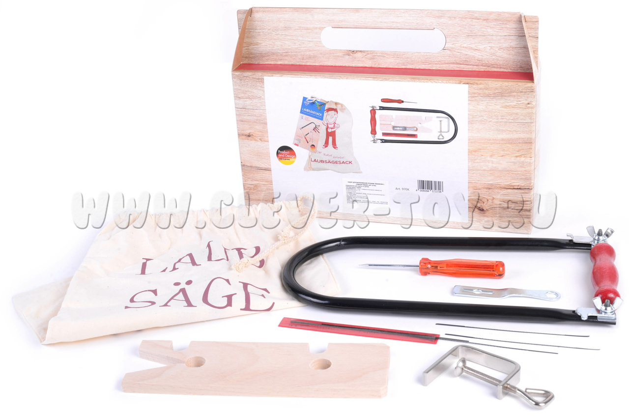 1. Лобзик с набором запасных пилок (6 штук) - для выполнения прямых и фигурных резов в различных материалах.