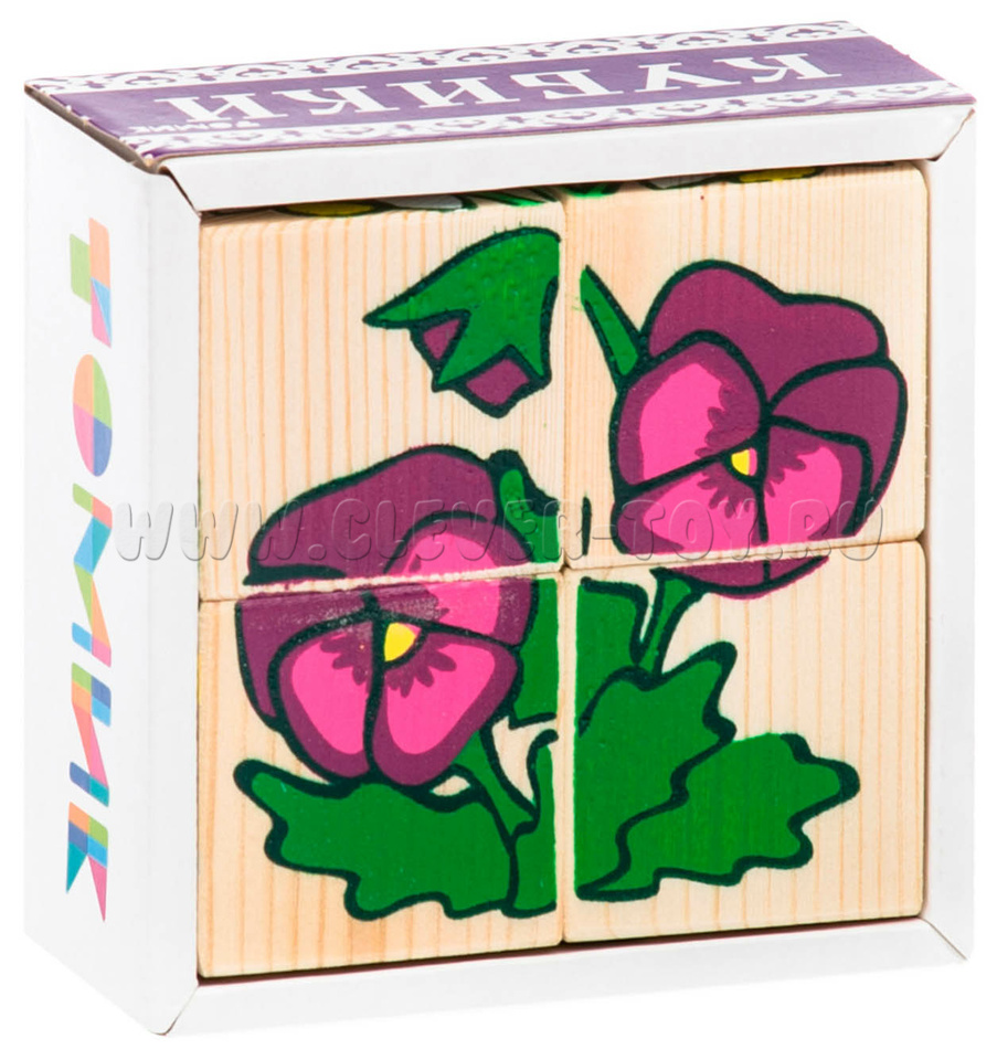 В состав входит 4 кубика, из которых ребенок может собрать 6 картинок мебели.