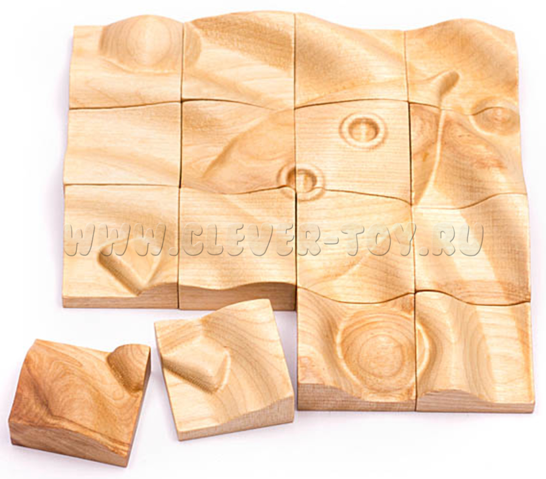 Пазл состоит из 16 деревянных элементов.