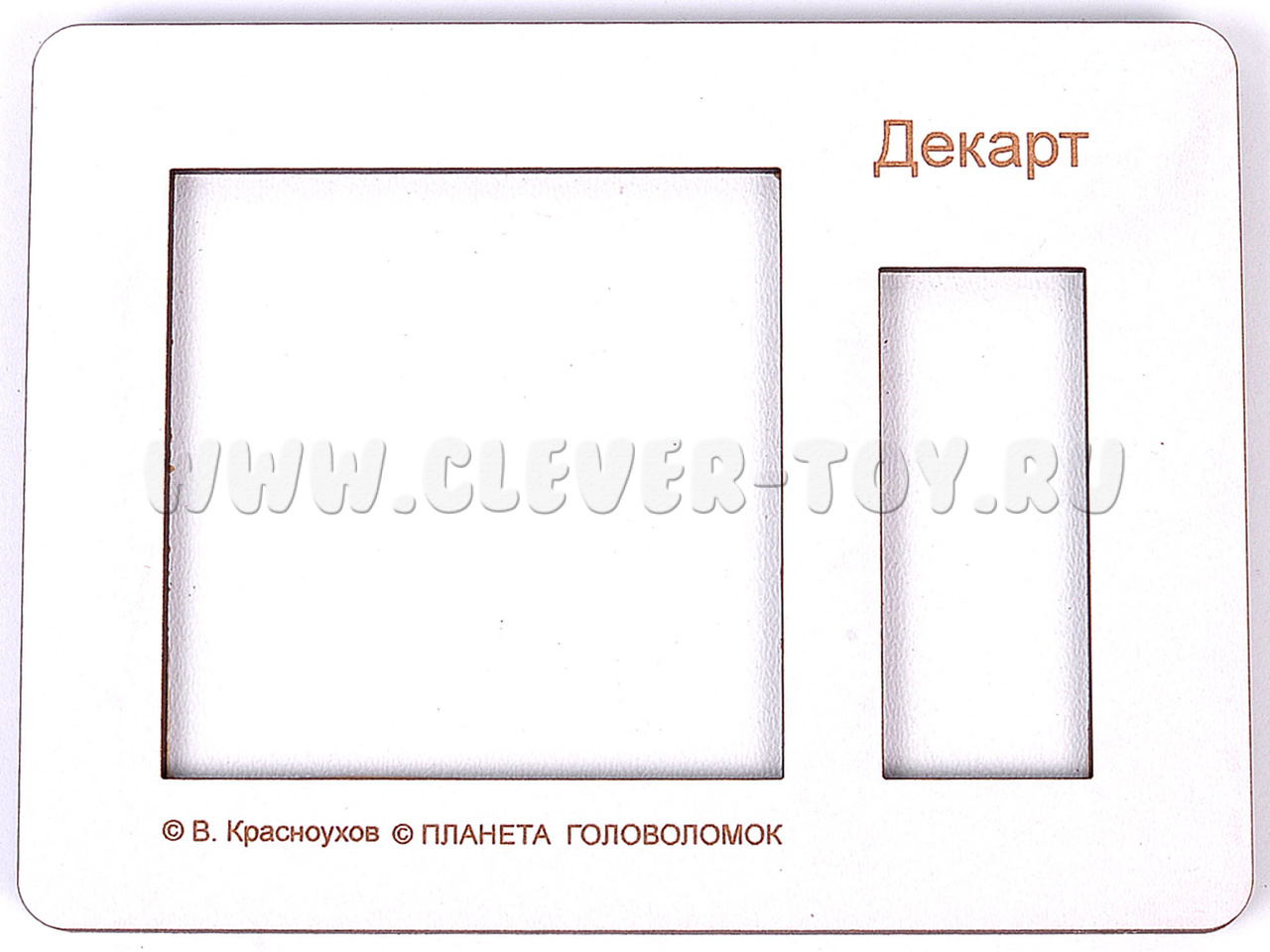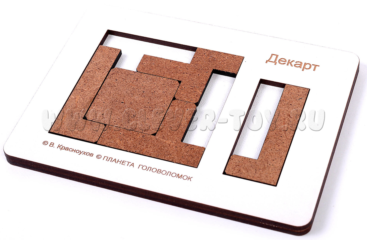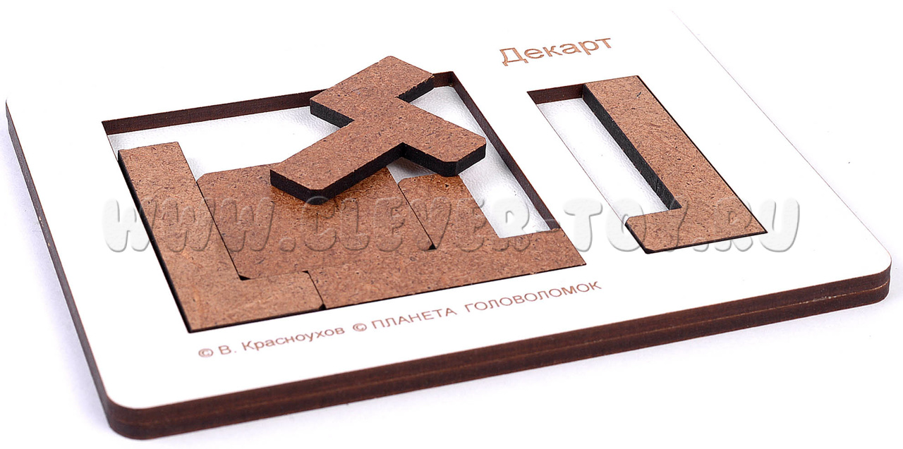 Головоломка "Декарт" состоит из 5 сложных деталей и деревянной рамки. Цель игры - правильно расположить все детали в рамке, чтобы вошли все 5.
