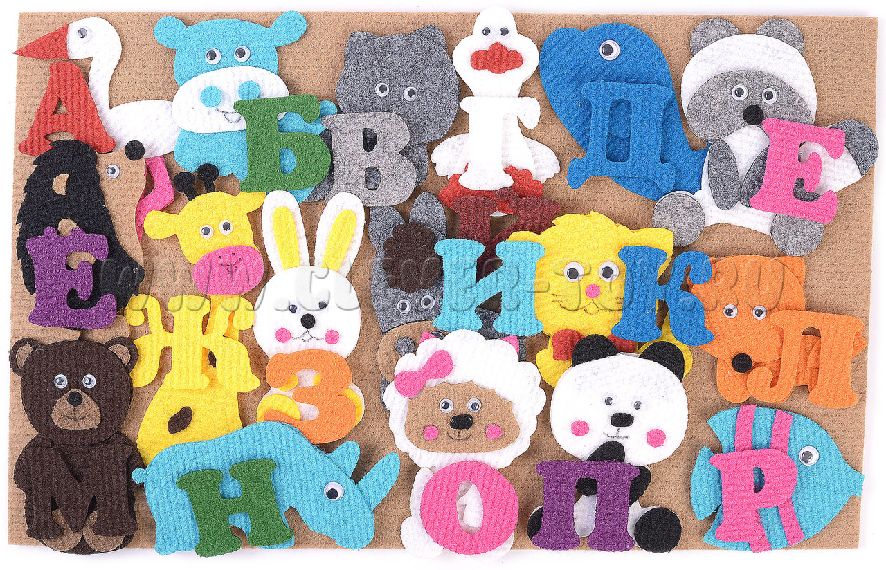 Реалистичные фигурки из современного прочного яркого материала - ковролина - помогут вашему малышу легко усвоить алфавит. В паре с каждой буквой русского алфавита в наборе есть фигурки животных, рыб и птиц, названия которых начинаются на эту букву.