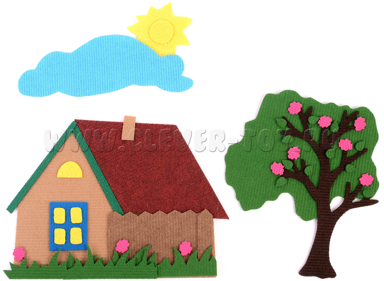 С помощью ярких и красивых ковролиновых деталей на многоразовых липучках домики превращаются в осенний, зимний, весенний и летний. Набор рекомендован опытными педагогами дошкольного образования для того, чтобы в игровой форме познакомить ребёнка с разными временами года.