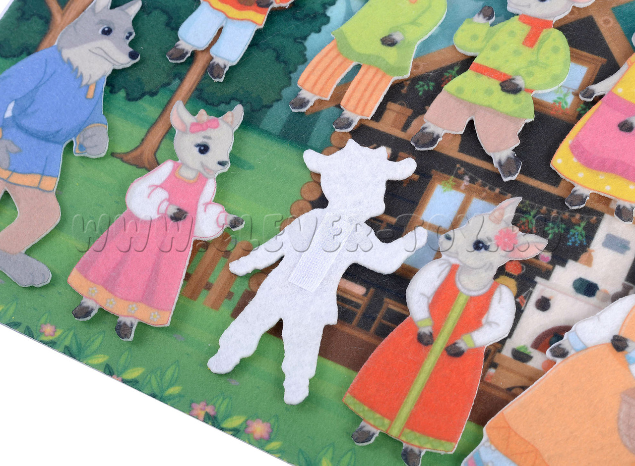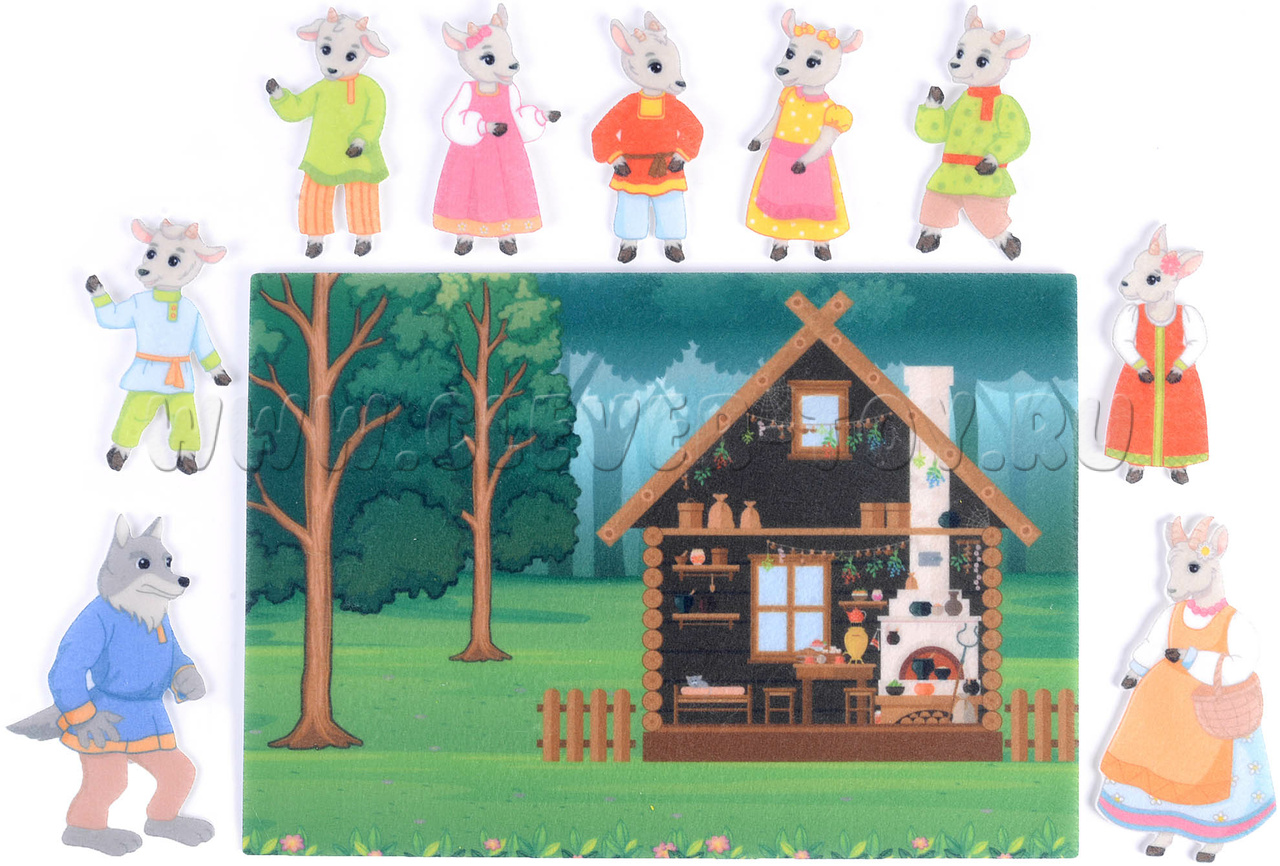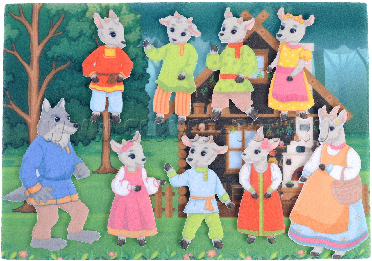 Набор из фетра «Волк и семеро козлят» даст возможность ребенку стать непосредственным участником всеми любимой с детства поучительной сказки. Набор можно использовать для домашних занятий с ребенком, а также в дошкольных учреждениях.
