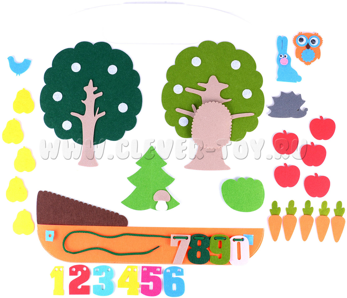 2. Прилепляйте и отлепляйте яблоки, груши, сову, зайца и т.д.;