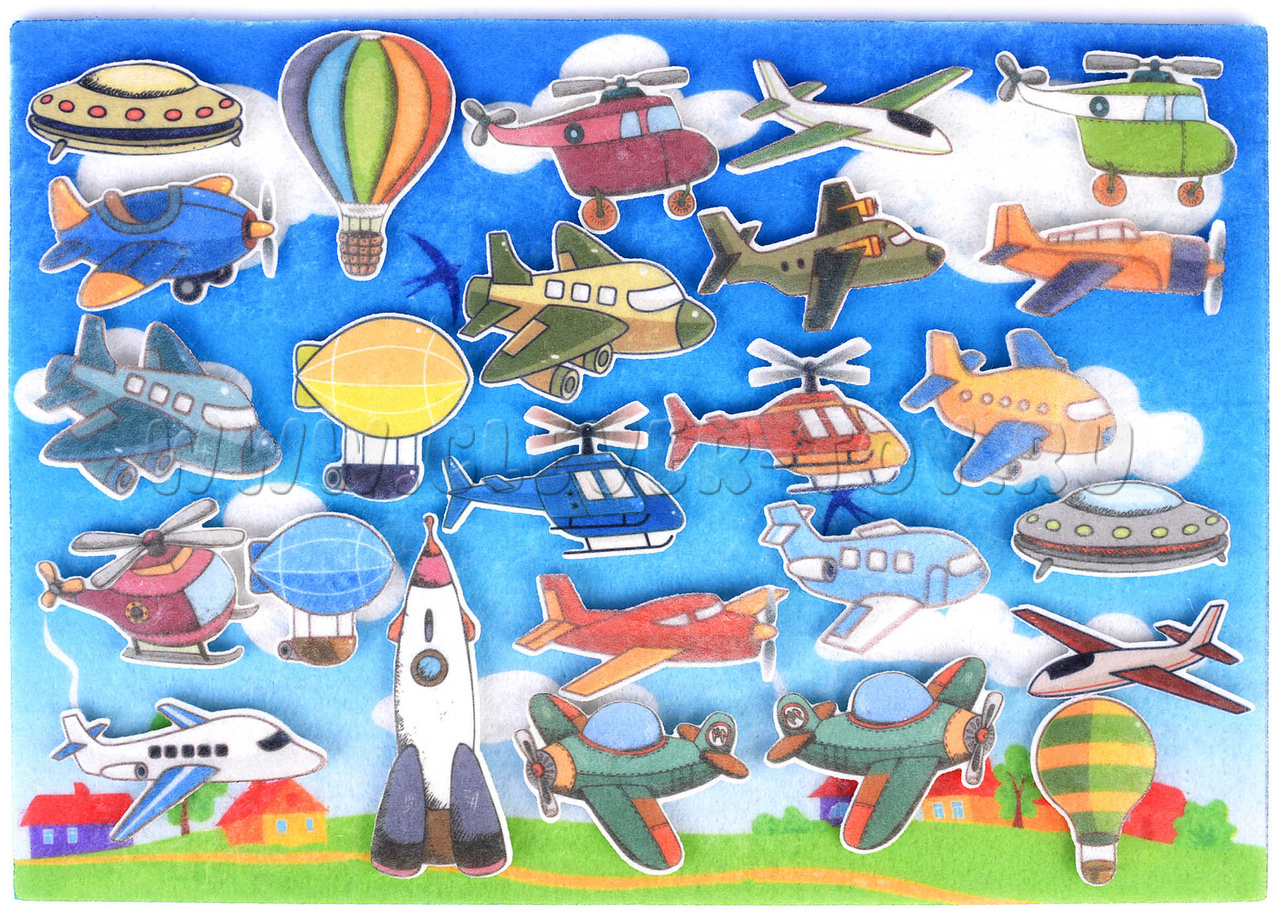 Липучки из фетра в форме самолетиков позволят малышу окунуться в мир фантазий. Игра-конструктор будет выглядеть как интересное приключение, в котором малыш будет главным героем и. Игра очень реалистичная, яркая и детализированная. Все детали идентичны оригинальным предметам. Материал не сомнется и не порвется во время игры, а многоразовые липучки позволят не ограничиваться в своих фантазиях.