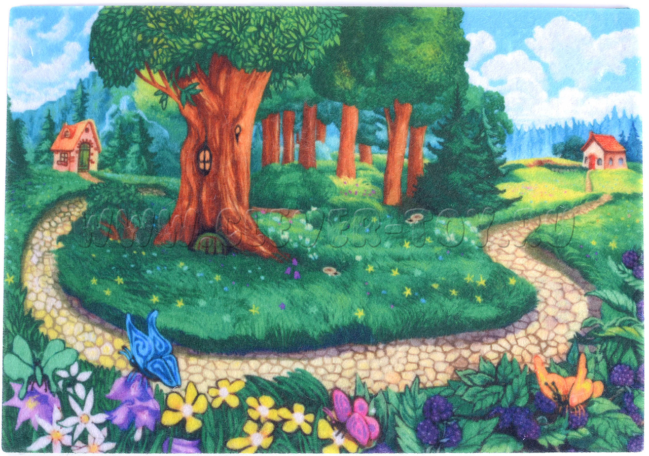- Игровое поле с изображением лесной тропинки от домика Красной шапочки к домику бабушки;