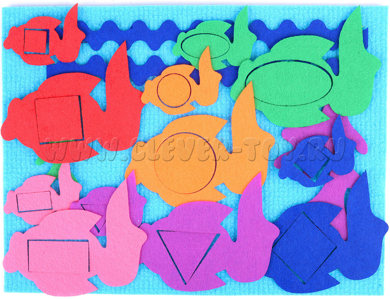 - Фигурки: рыбки, геометрические фигуры, волны и водоросли (28 шт.).