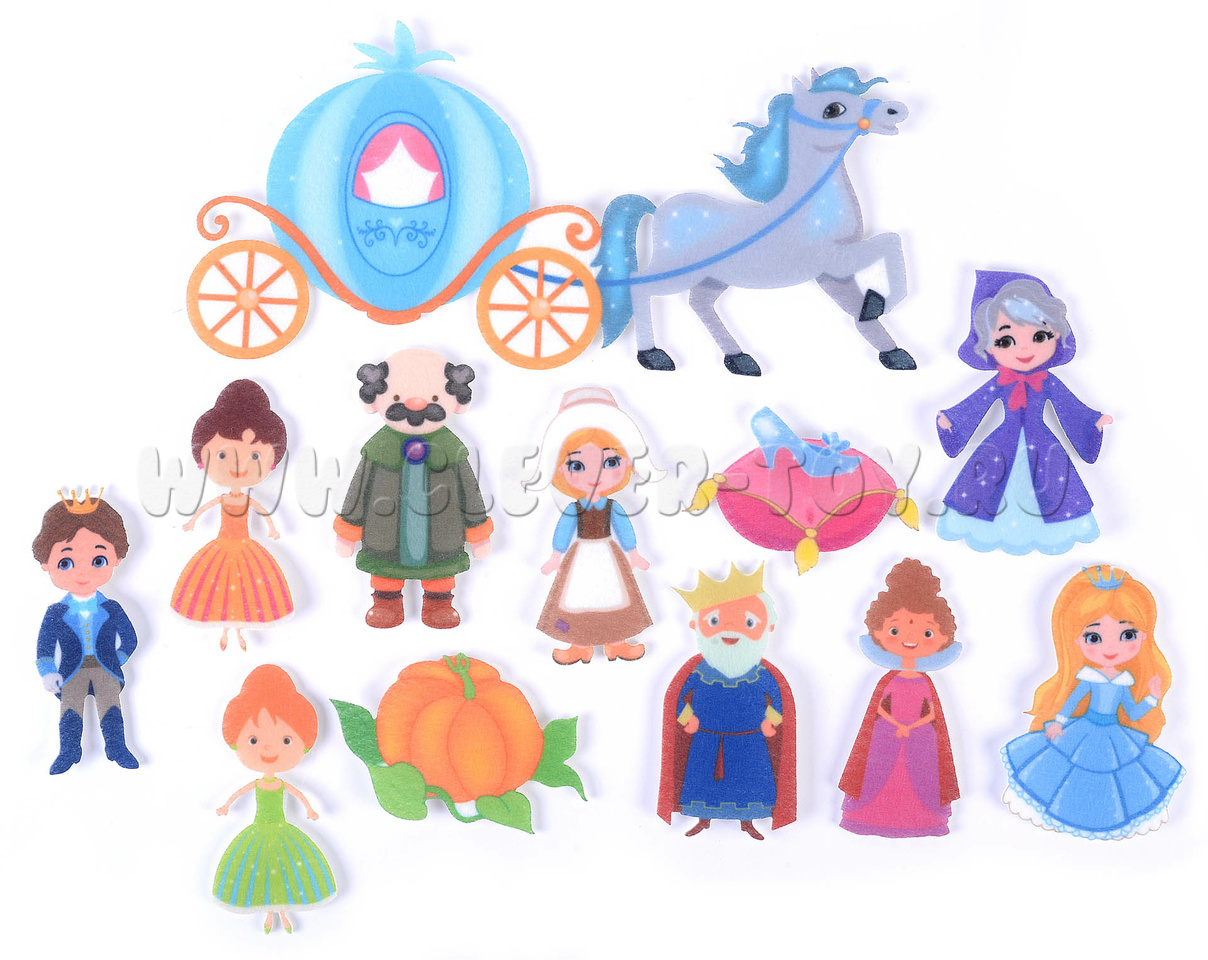 Передвигая по мягкой основе фигурки персонажей Шарля Перро, родители и дети могут разыгрывать известный сюжет по ролям, или же придумать абсолютно новую историю. В процессе игры можно обсудить с малышом сказку и ее героев: «Чего еще могла пожелать Золушка?», «Какие приключения ждут ее и принца?» и др.