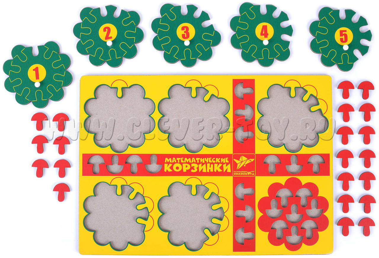 В комплект также входит инструкция с описанием 12-ти увлекательных игр и занятий для обучения ребёнка основам математики. Главные герои игр – зверята-цифрята – любят собирать грибы. У каждого есть своя полянка и своя корзинка. Примеры игр: «Как цифрята поделили грибы», «Кто набрал грибов больше всех?», «Добавь грибок» и другие.