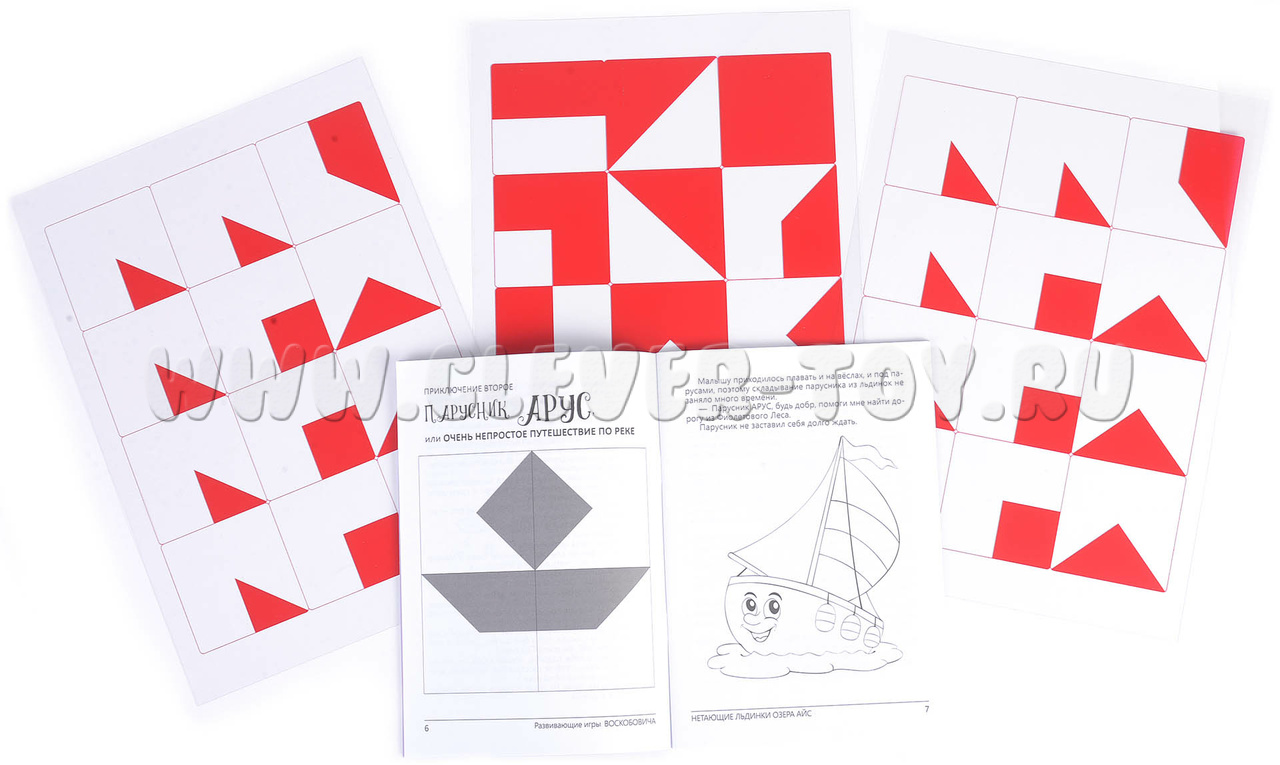 - 36 пластинок (ПВХ, 63х63 мм) с геометрическими фигурами красного цвета.