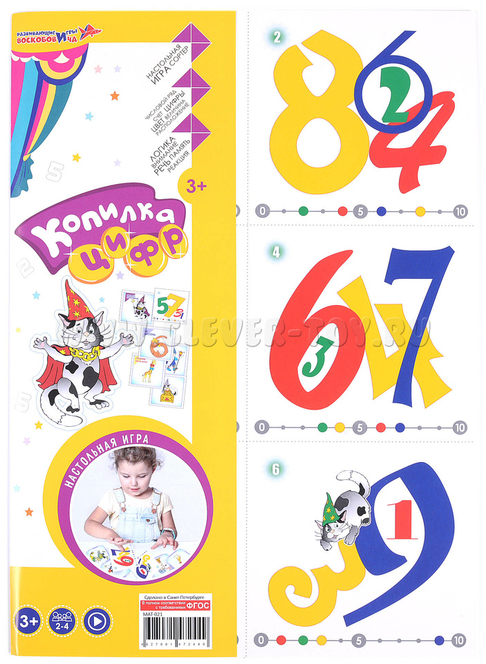 Настольная результативная игра, сортер "Копилка цифр. Ларчик" Шесть игр в одной. Динамичная игра для 2-4 человек: ищем цифры с заданными параметрами, начиная с одного (цифра), и постепенно добавляя другие: цвет, величину, положение (предлог).