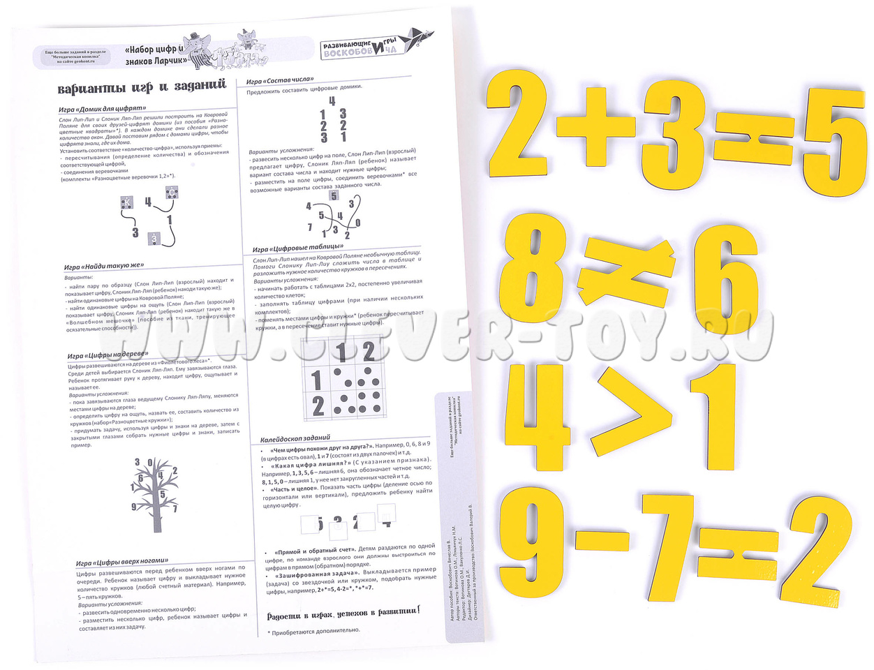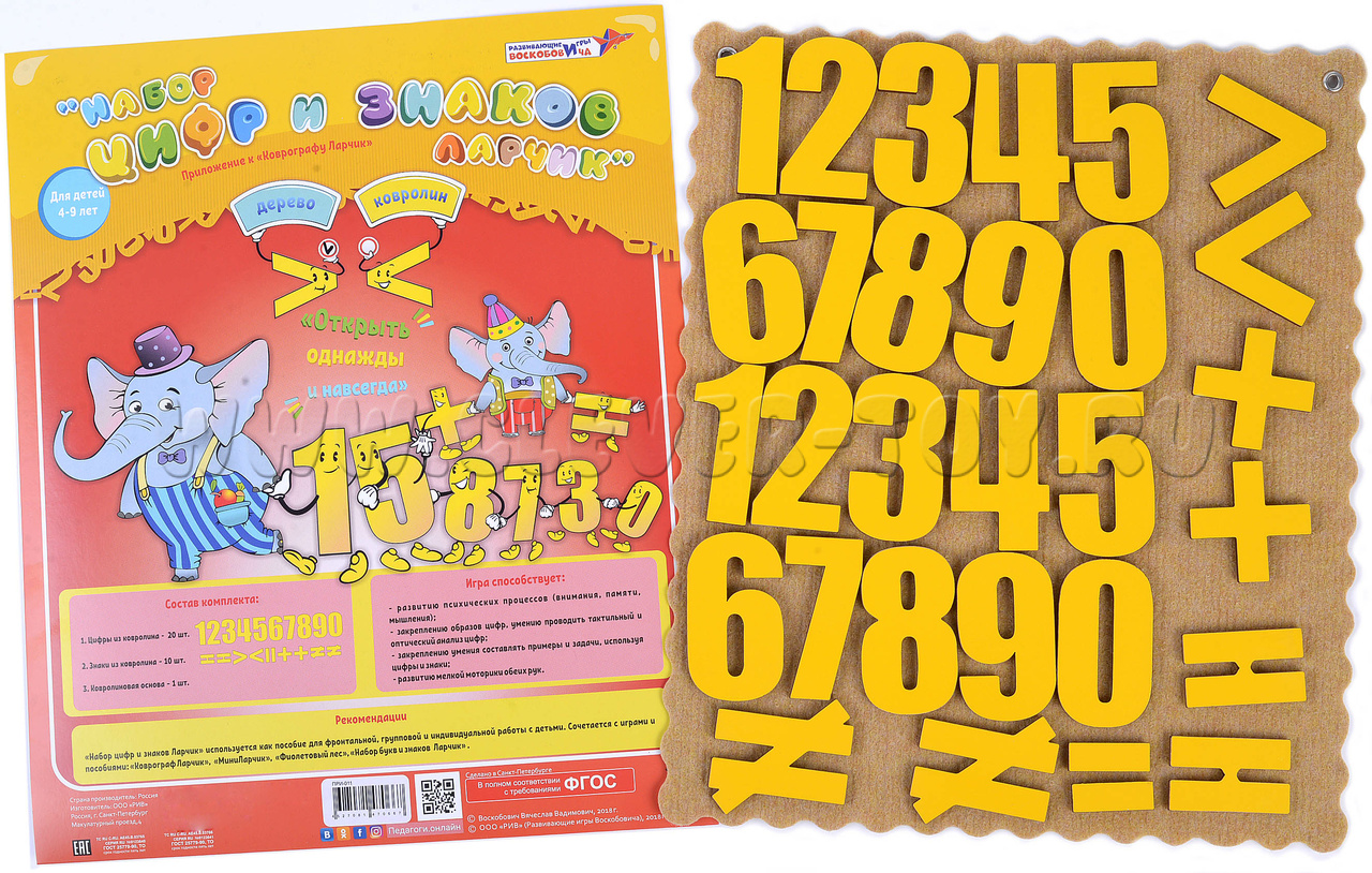 В комплект также входит инструкция с подробным описанием развивающих игр и занятий (с использованием других приложений серии «Ларчик»), в том числе: