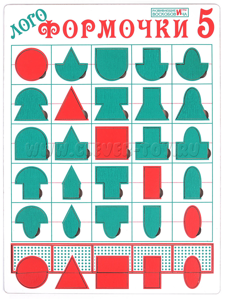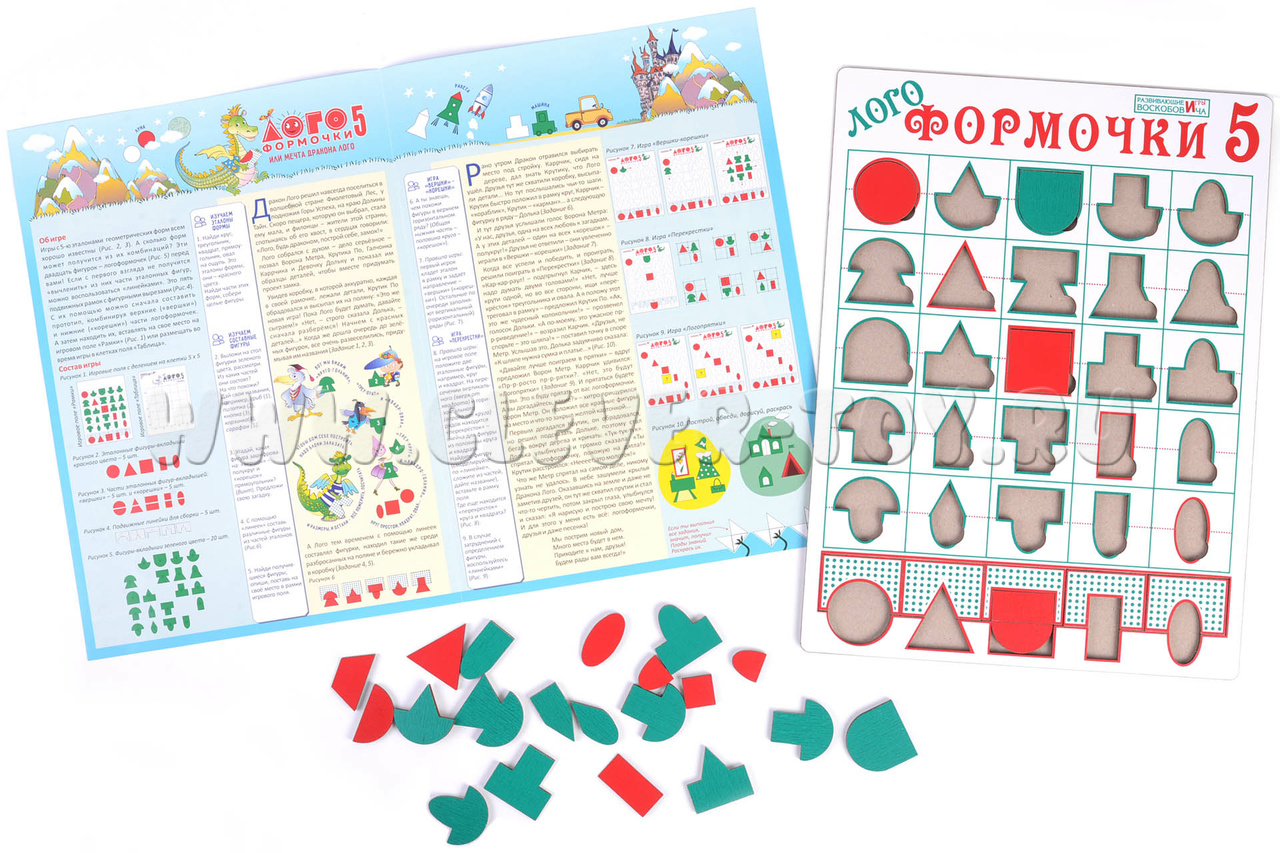 - поле игры с сеткой 5*5 для лучшего восприятия фигур-вкладышей и их частей;