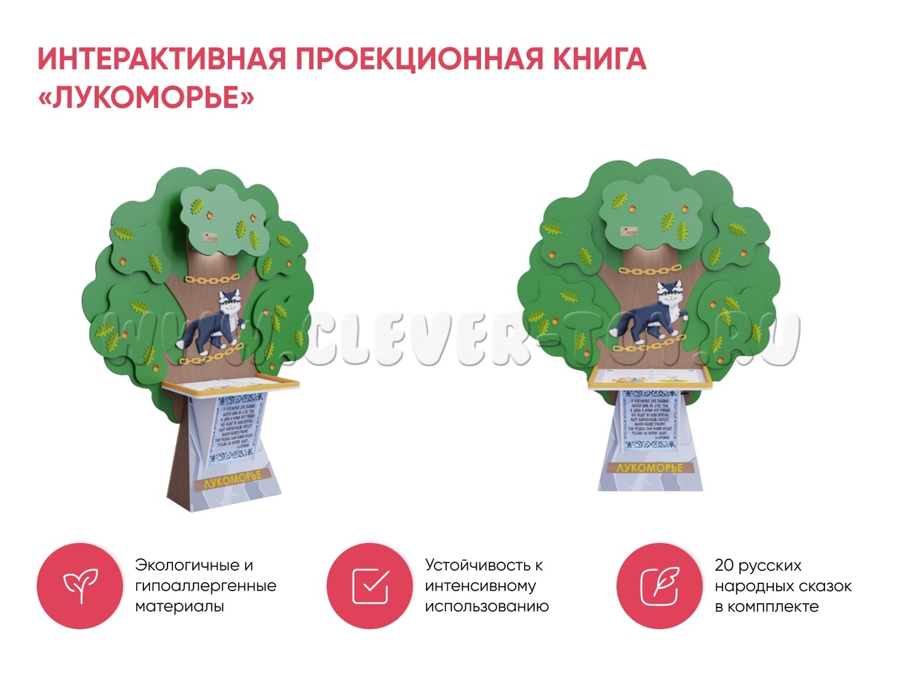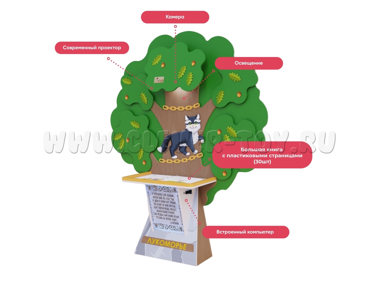 Стилизованная стойка, выполненная в виде интерактивной книги, - это уникальный образовательный инструмент для программ дошкольного образования. Крупные пластиковые страницы, на которые проецируются яркие иллюстрации и текст, позволяют детям не только знакомиться с литературой, но и активно участвовать в процессе чтения.