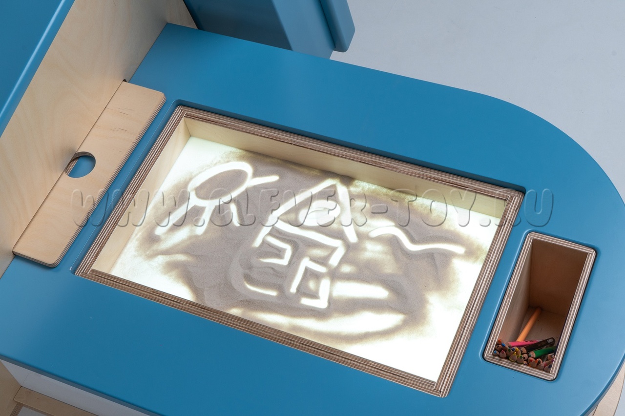 - Световая песочница с закрывающейся крышкой - на втором крыле;