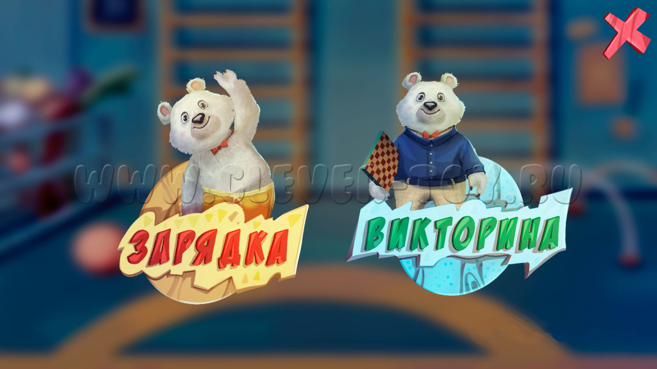 Главный герой – веселый полярный медведь по имени Умка. Ему поможет один желающий из группы, который будет управлять мишкой при помощи жестов. Вместе они покажут серию общеукрепляющих упражнений: