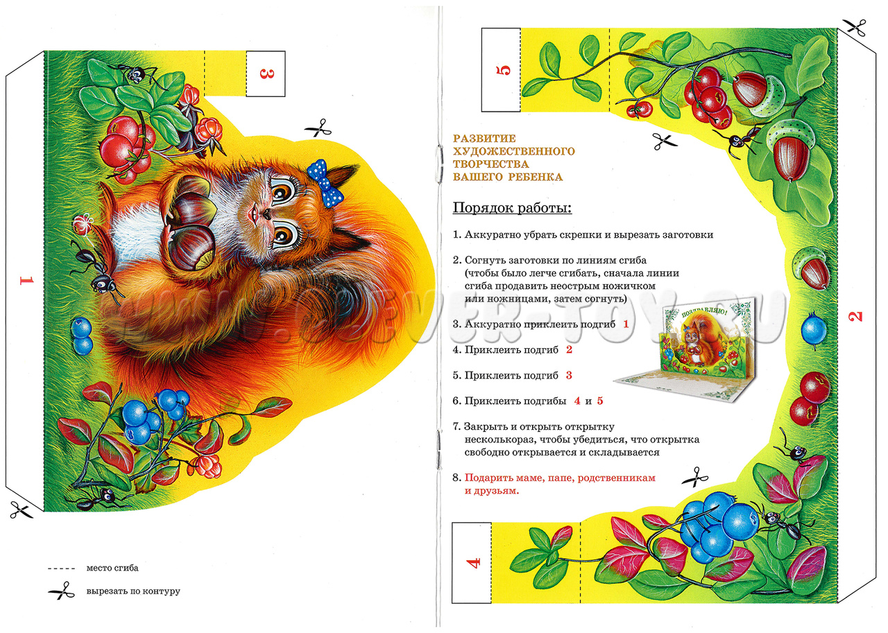3D объёмная открытка-книжка для детского творчества "Белочка".