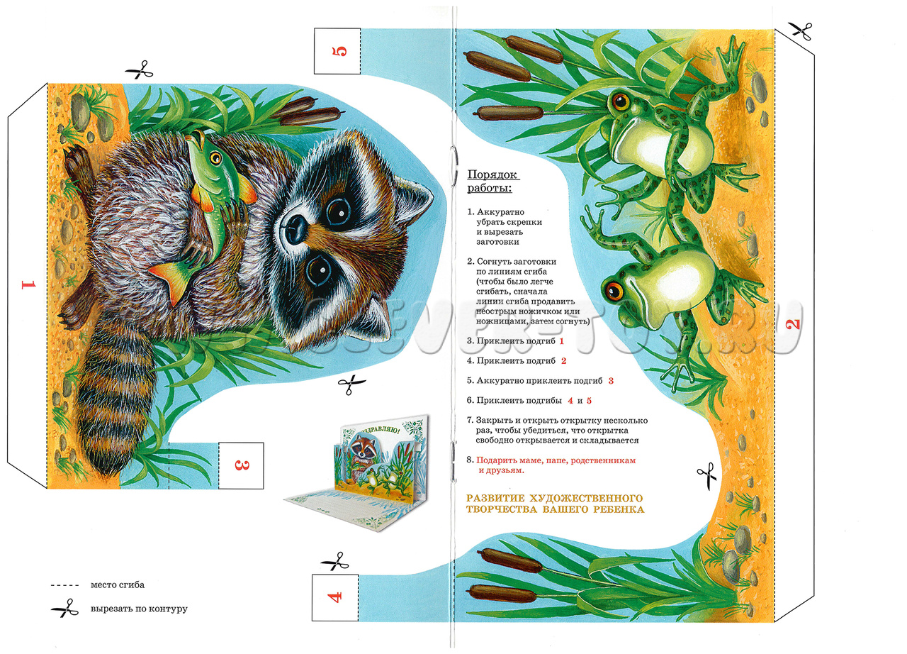 3D объёмная открытка-книжка для детского творчества "Енотик".