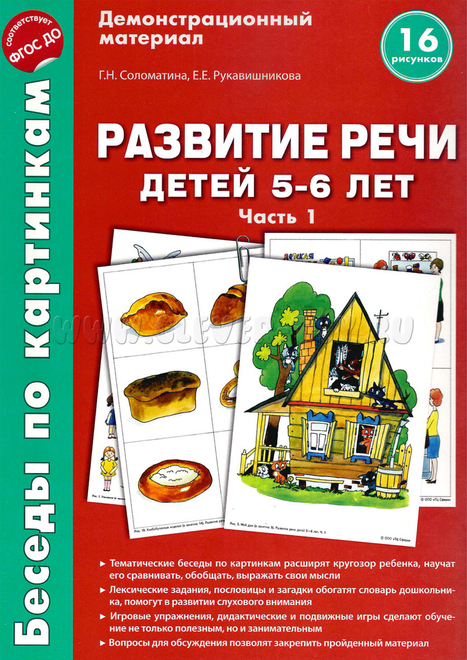 Методическое пособие "Занятия по развитию речи детей 5-6 лет" соответствует содержанию наглядного пособия, дополняет и расширяет его (пособие приобретается отдельно).