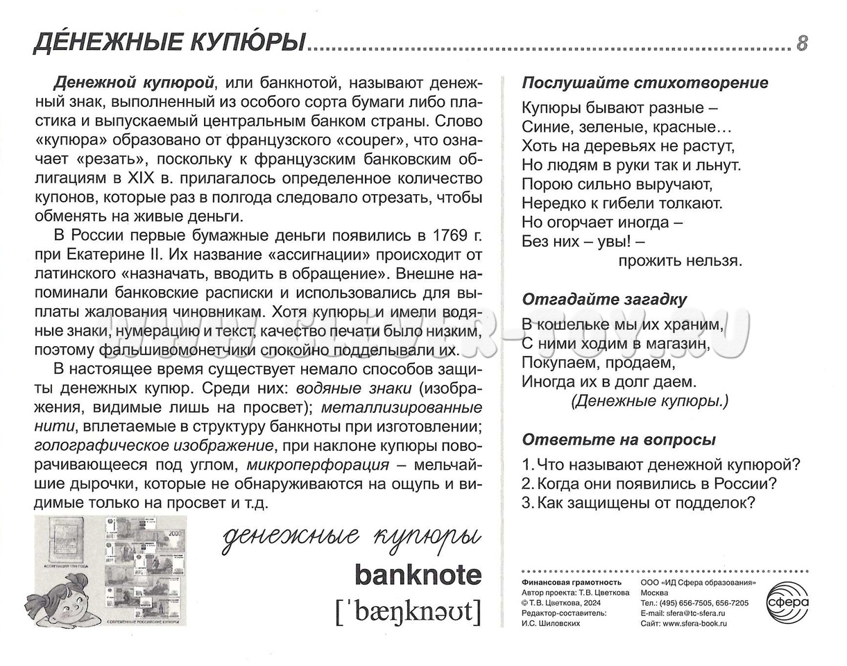 Комплект "Финансовая грамотность" состоит из 16 цветных демонстрационных карточек (картинок)и адресован детям, желающим овладеть основами финансовой грамотности. Дошкольники и младшие школьники ознакомятся с финансовыми терминами и их значением, научатся различать финансовые операции, овладеют важными теоретическими навыками, а главное - смогут использовать полученные знания в повседневной жизни.