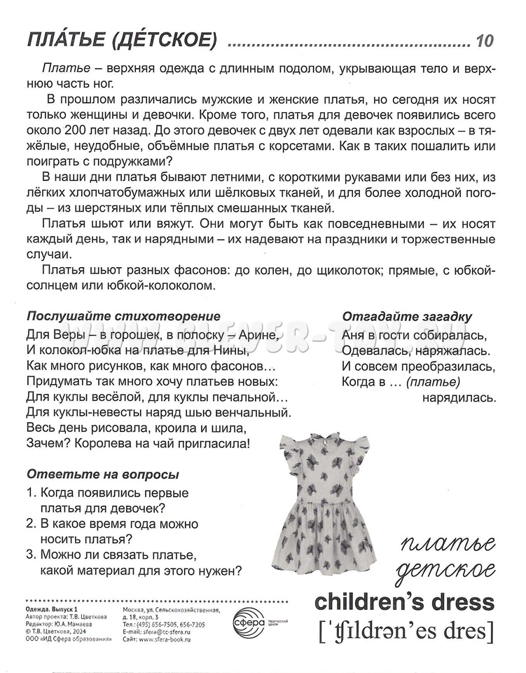 Набор карточек "Одежда. Выпуск 1" состоит из 16 цветных демонстративных карточек (картинок) и адресован детям, желающим познакомиться с видами одежды. На лицевой стороне каждой карточки дается цветное изображение, на обратной - подробное описание, из которого дети узнают немало интересного и поучительного. Для лучшего закрепления материала представлены оригинальные стихотворения и рифмованные загадки по теме, а также вопросы, на которые ребенок ответит после изучения материала или беседы со взрослым.