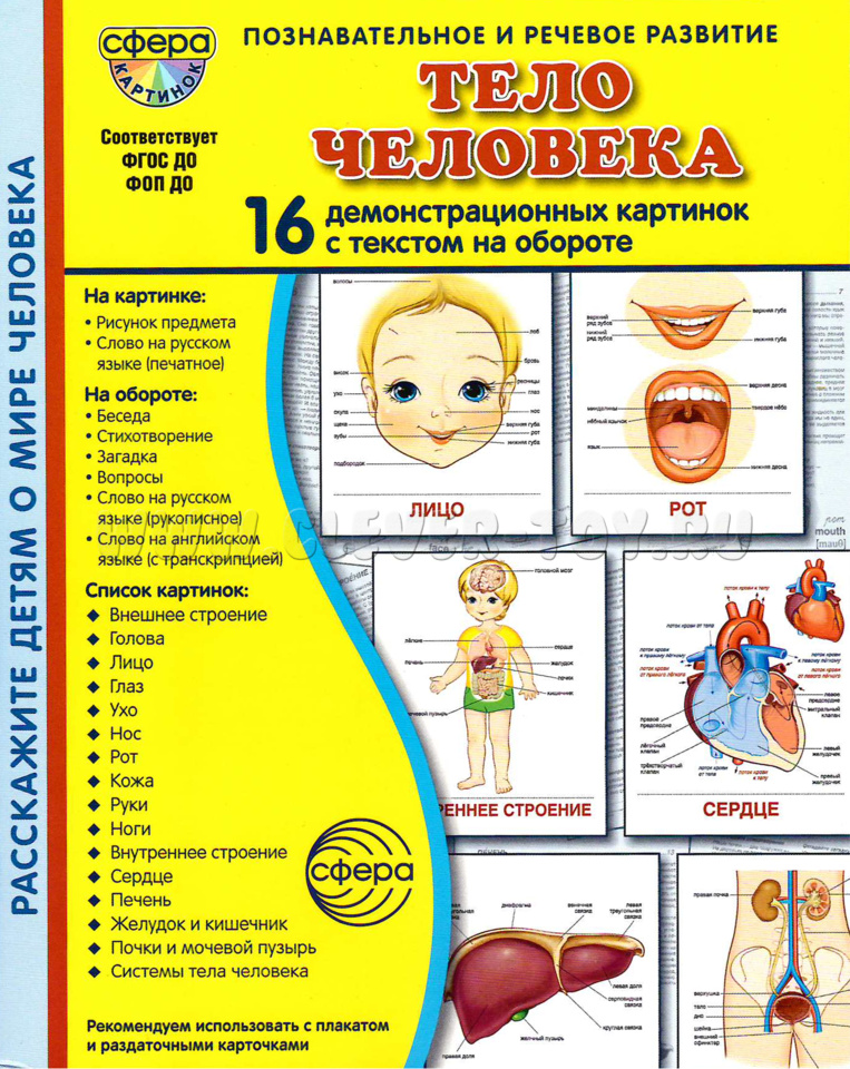 Откройте удивительный мир человеческого тела с нашими демонстрационными карточками! Эти уникальные материалы помогут вашему ребёнку узнать всё о своём теле, развить внимательность и любознательность.