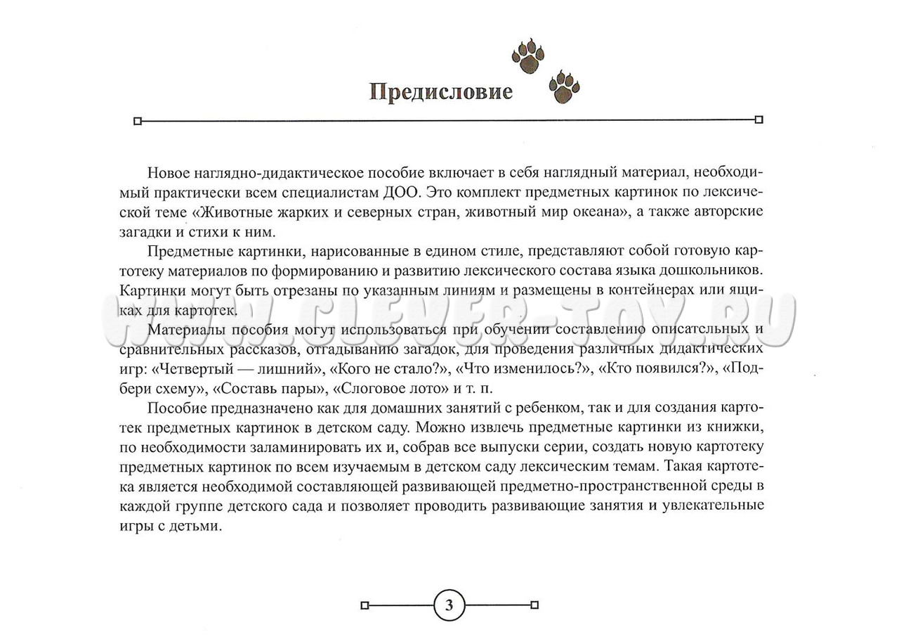 Наглядно-дидактическое пособие включает в себя комплект предметных картинок по лексической теме «Животные жарких и северных стран, животный мир океана», а также авторские загадки и стихи к ним.