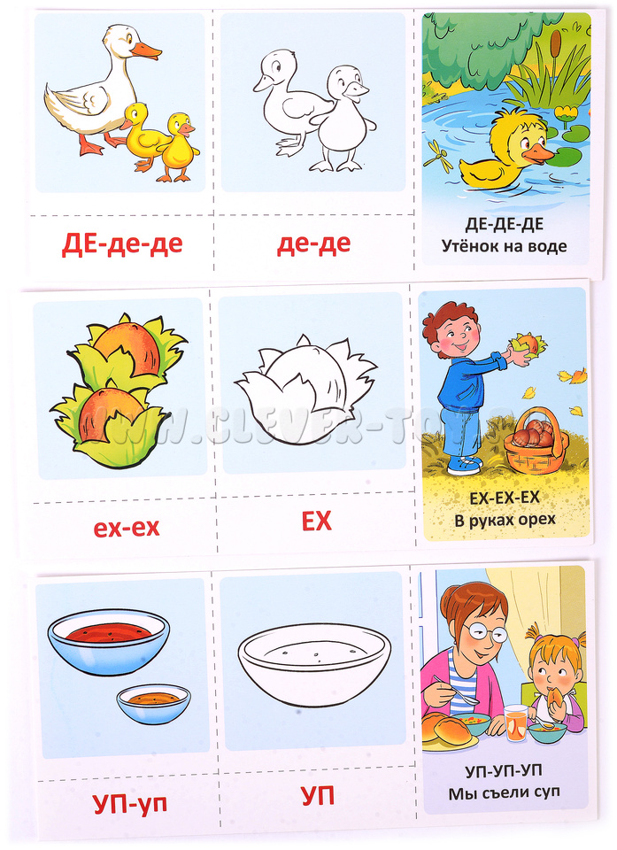 Задания в этом наборе разработаны в игровой форме и направлены на то, чтобы помочь неговорящему ребёнку развить простой ритмический рисунок речи.