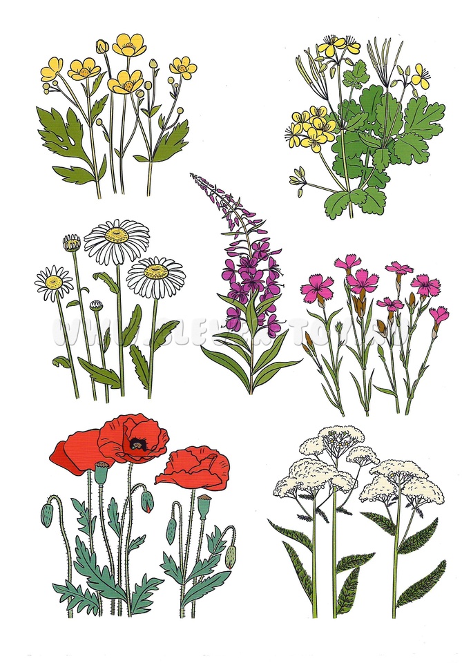 Рекомендуется посвящать одно задание на каждый цветок. В пособии есть приложение с изображениями цветов, которые можно вырезать и составить аппликацию. 14 видов цветов, описываемые в пособии: одуванчик, ромашка, василек, зверобой, цикорий, клевер луговой красный, колокольчик, лютик, мак полевой, гвоздика, травянка, тысячелистник, горицвет, чистотел.