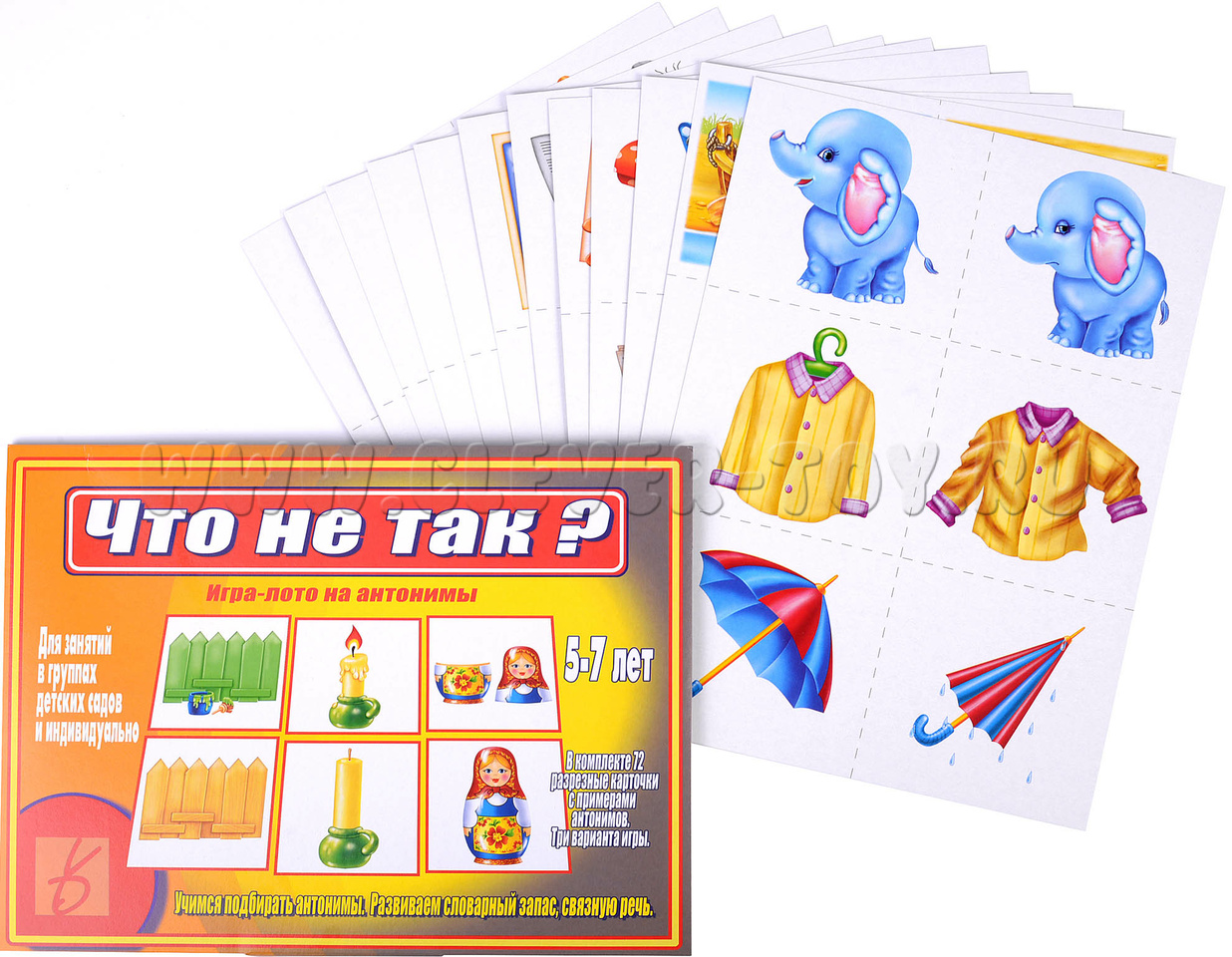 Игра "Что не так" подойдет для организации занятий с детьми старшего дошкольного возраста (5-7 лет) и поможет малышам в развитии связной грамотной устной речи, расширении словарного запаса и освоении новой категории слов – антонимов. Регулярные занятия с игрой поспособствуют развитию зрительного восприятия и визуальной памяти, произвольного внимания, логического мышления.