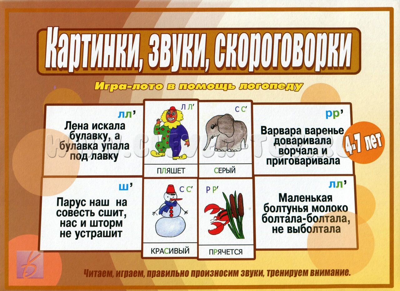 Игра-лото "Картинки, звуки, скороговорки" подойдет для занятий с детьми старшего дошкольного возраста. Она представляет собой эффективное образовательное средство, которое поможет логопедам, педагогам и родителям в работе с детьми.