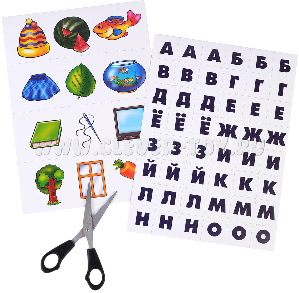 Перед началом игры родителю или педагогу рекомендуется разрезать карты по пунктирным линиям. Предложите ребенку прочитать слова по первым буквам картинок и составить их из полученного набора букв. Карточки-буквы могут использоваться для составления других слов в процессе индивидуальных или групповых занятий.
