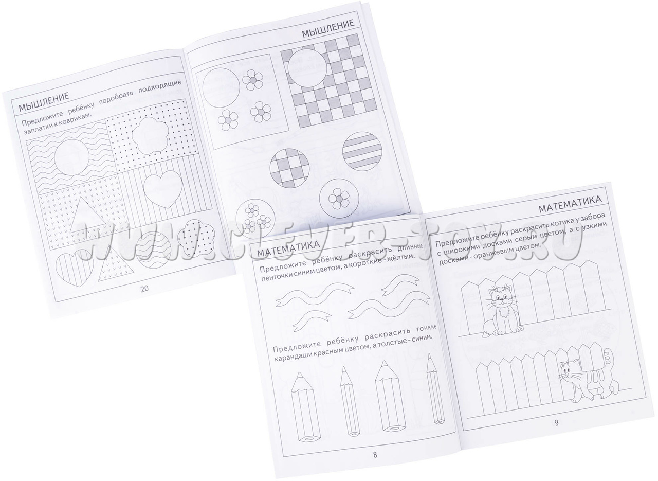 Возрастные наборы “Проверяем знания дошкольника” предназначены для проверки и оценки мышления и накопленных навыков ребенка к определенному возрасту. Этот набор для детей 4 лет. Вы объясняет ребенку задание, а ребенок их решает самостоятельно.