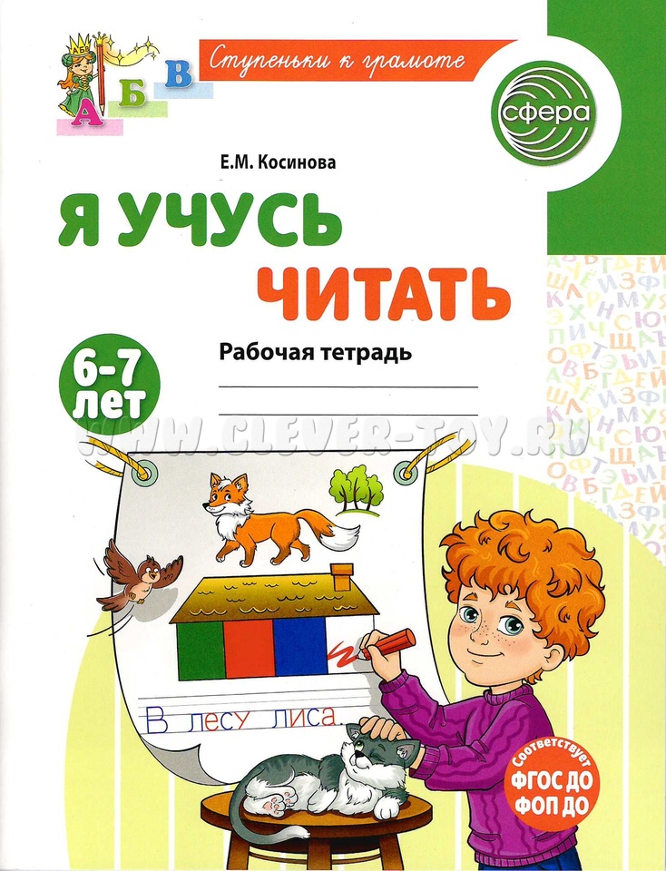 Рабочая тетрадь поможет подготовить ребёнка к школе и предупредить нарушения чтения и письма на этапе школьного обучения. Тетрадь соответствует ФГОС ДО и ФОП ДО.