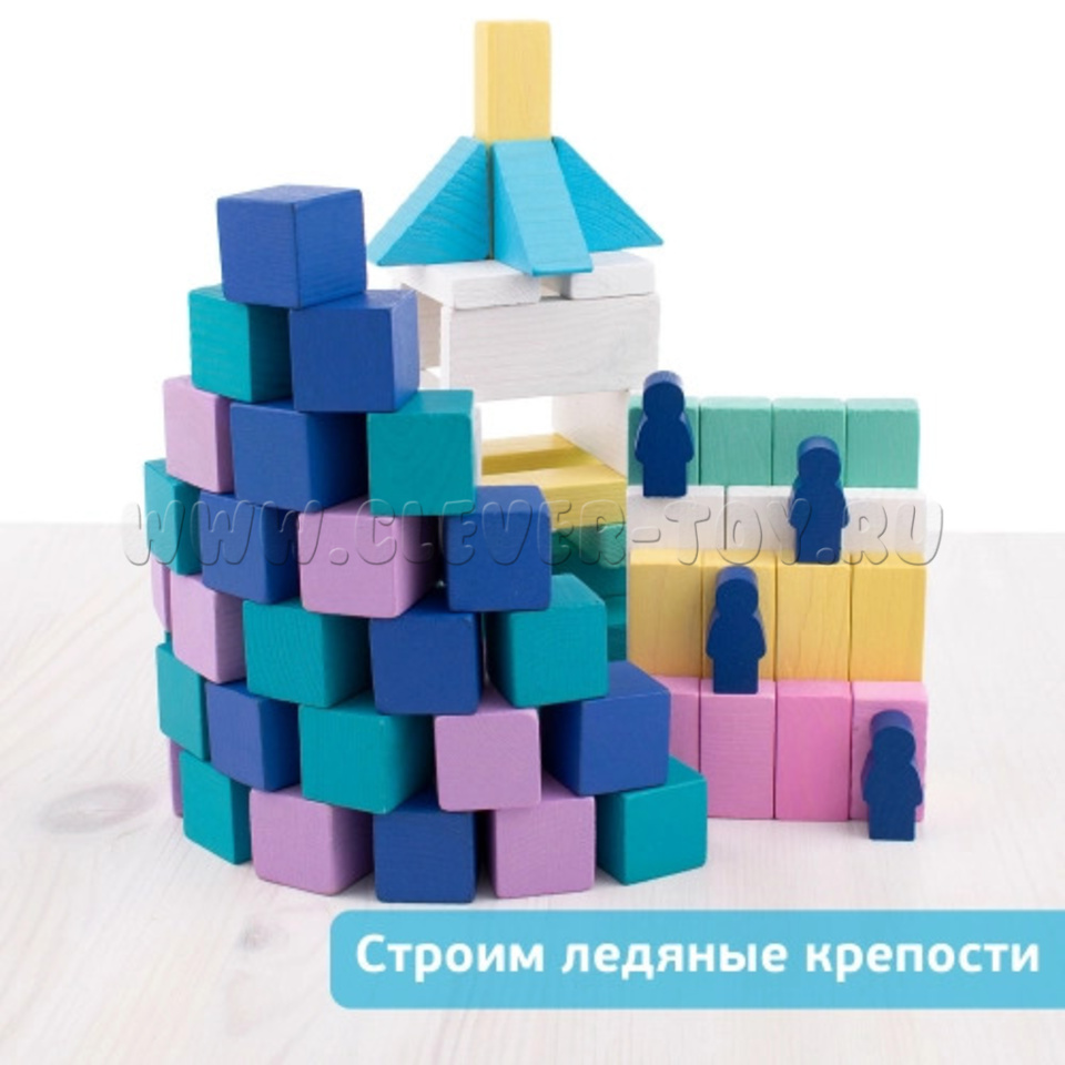 Конструктор выполнен из безопасных для здоровья ребенка экологически чистых материалов и окрашен нетоксичными красками. Расширенный набор деталей (105 штук!) предполагает множество доступных вариантов построек: от детской игровой площадки до снежного замка и ракеты, готовой к запуску в космос.