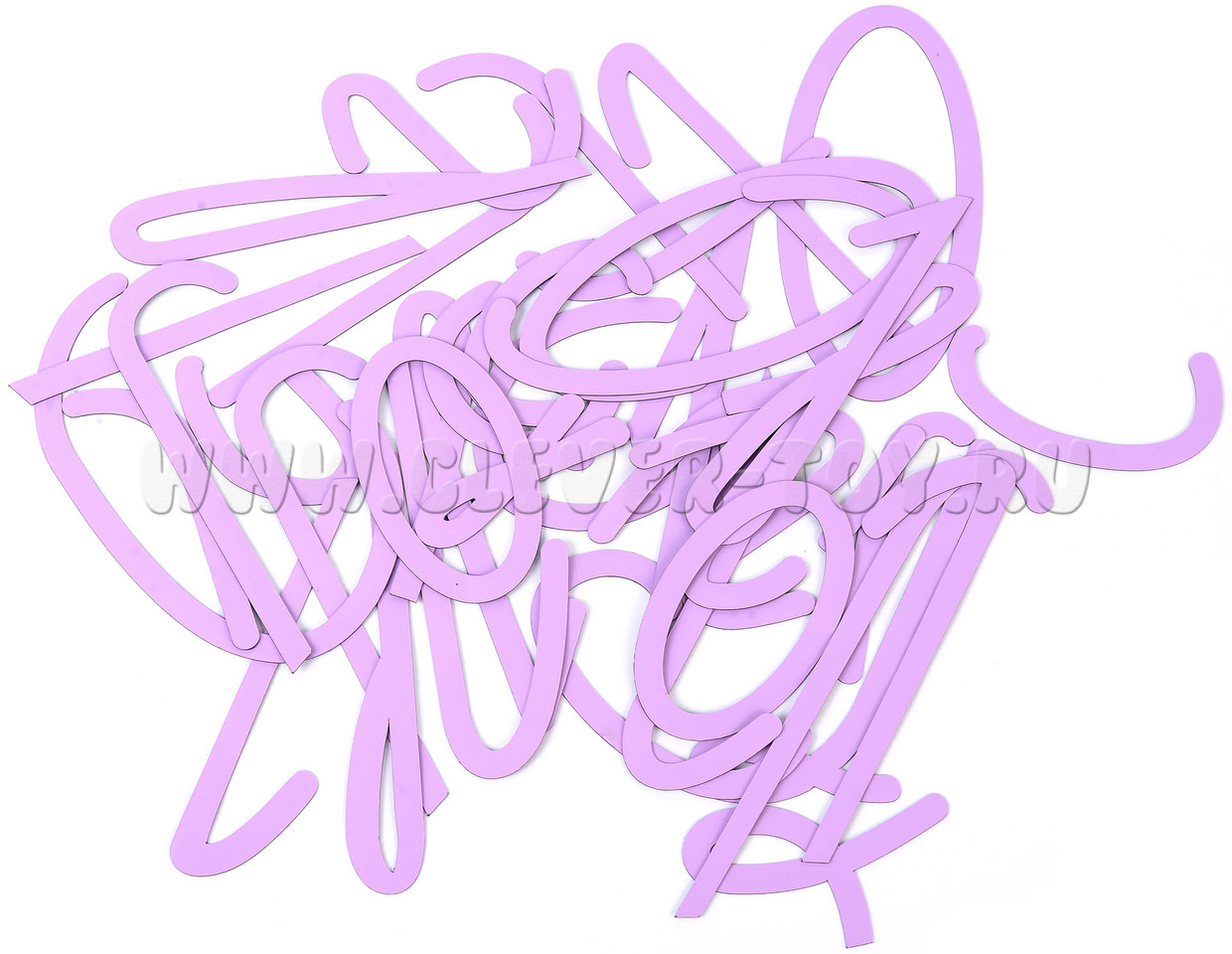 Элементы букв выполнены в 2-х цветах: Строчные выполнены в темно-фиолетовом цвете; Прописные в сиреневом.