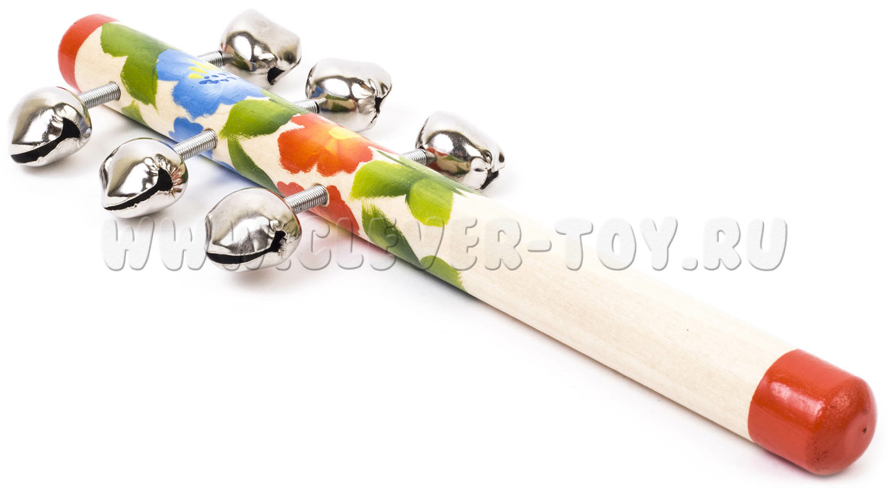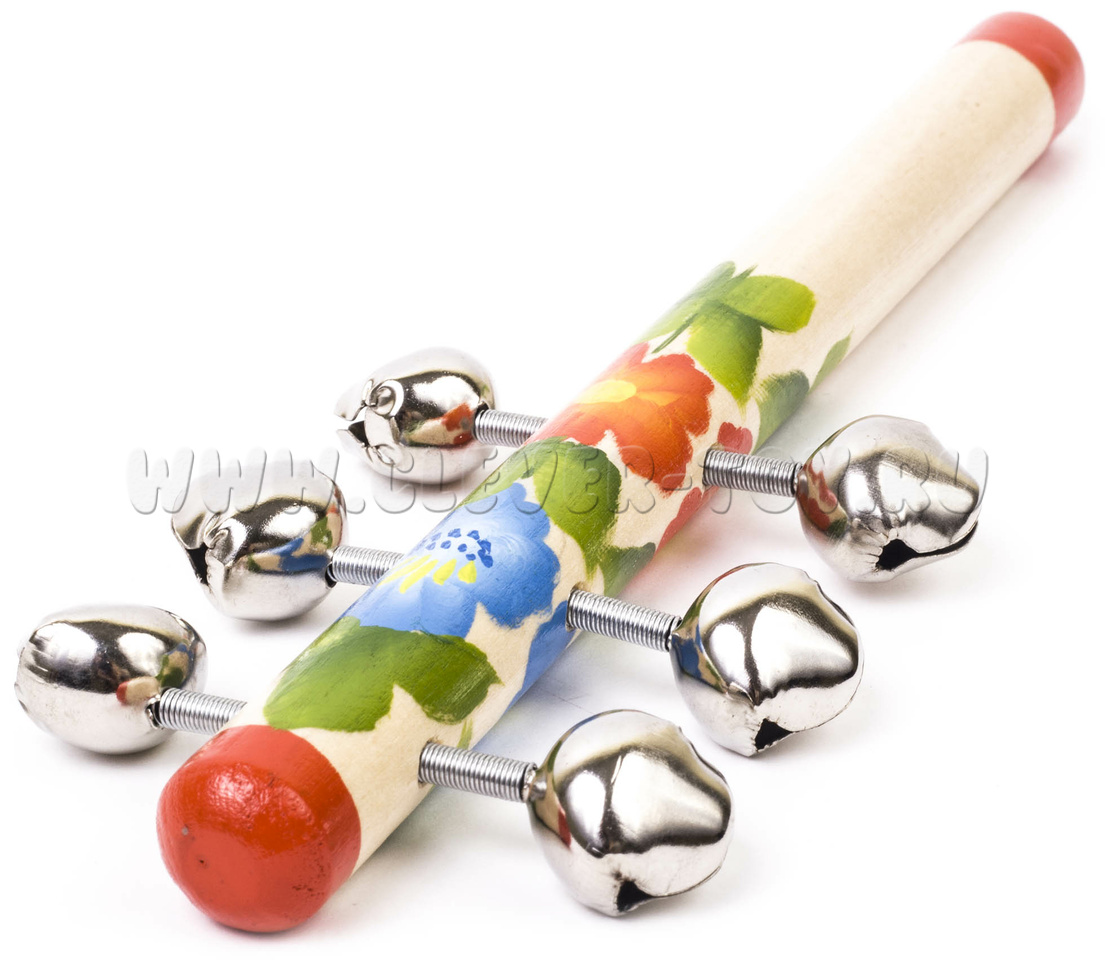 Представляет собой цилиндрическую палочку длиной 200 мм, диаметром 15 мм. В верхней части закреплены 6 бубенцов по 3 штуки с каждой стороны. Материал: береза.