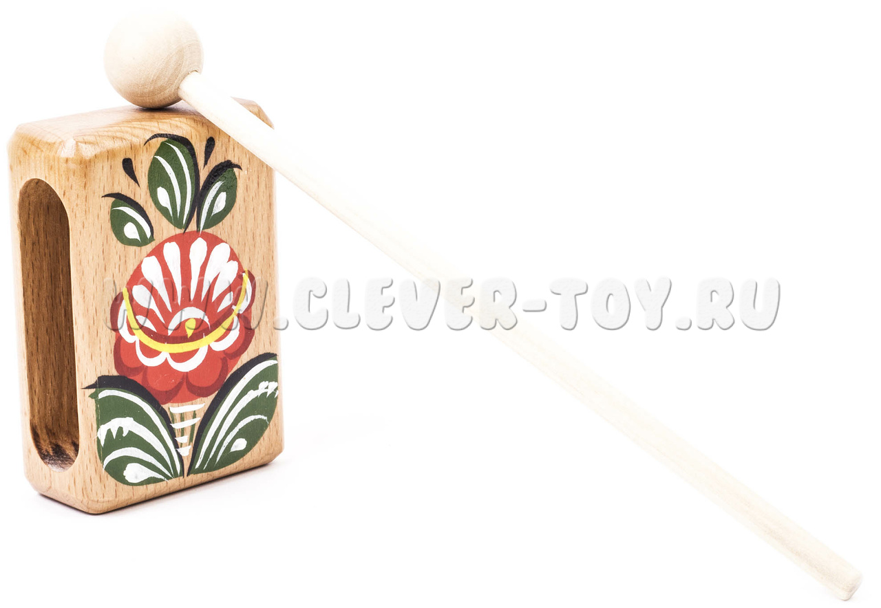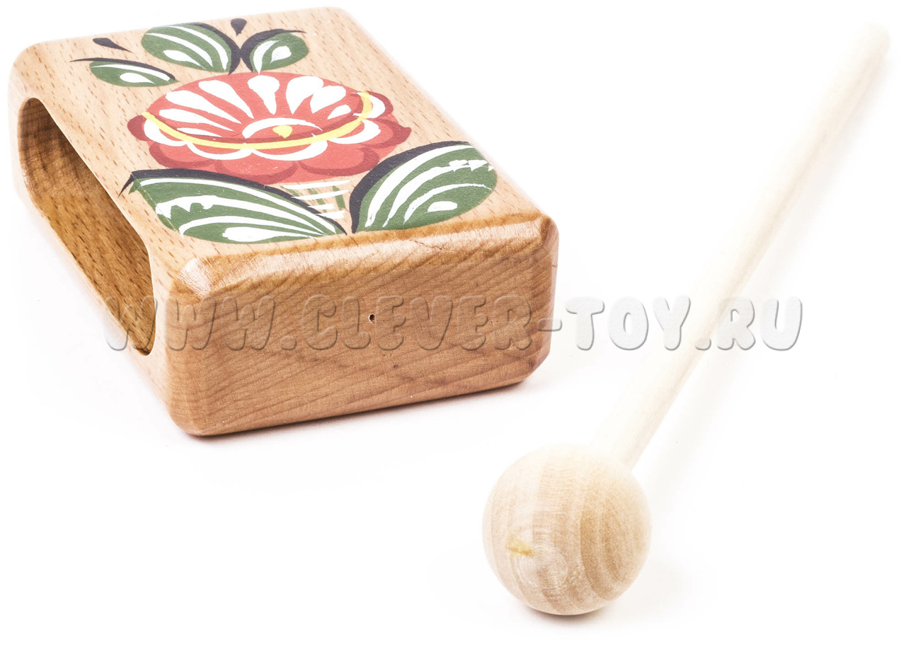 Представляет собой деревянный брус 30х50х80 мм. Музыкальный инструмент комплектуется ударной палочкой. Материал: бук.