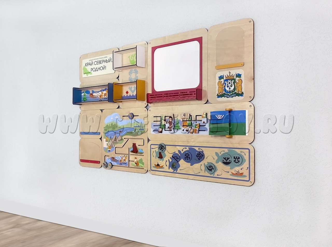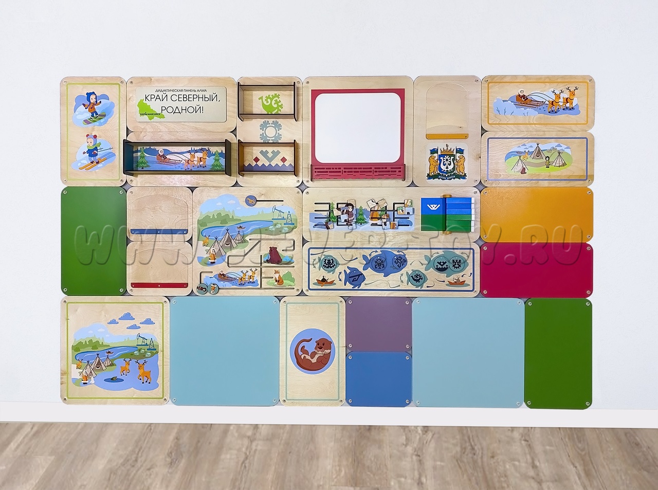 Это образовательная панель для оформления пространства детских учреждений. Состоит из четырёх модулей, которые можно комбинировать по своему усмотрению.