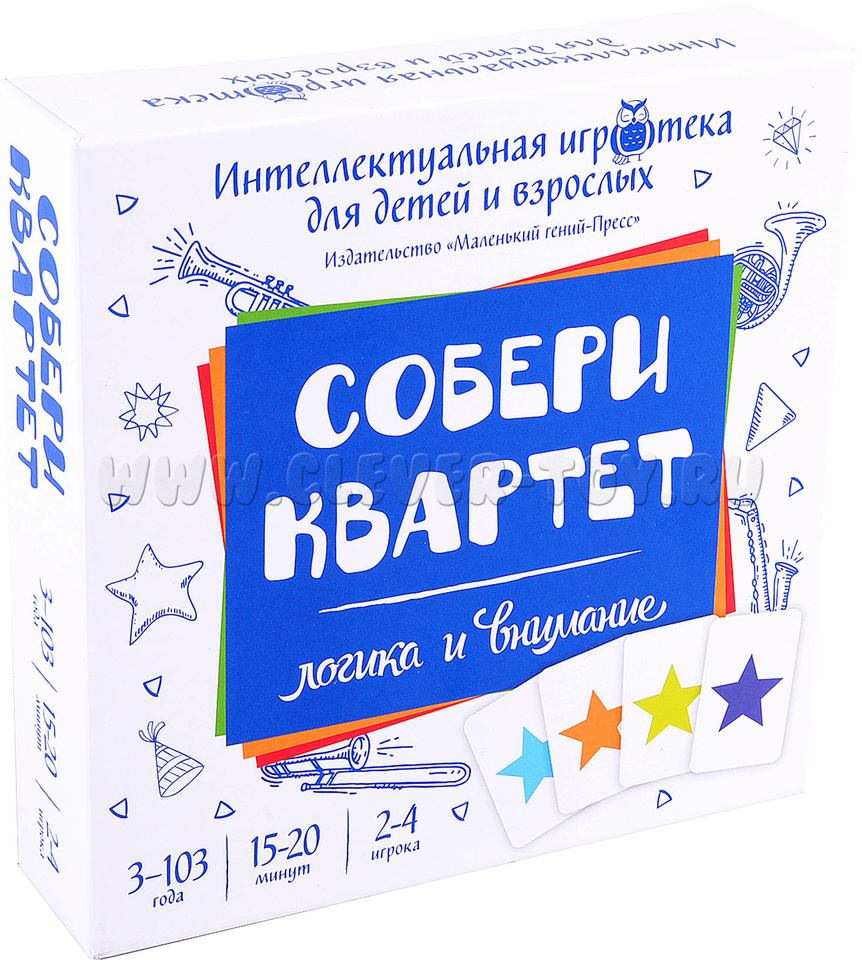 Развивающая игра "Собери квартет" - быстрая карточная игра, которая подойдет взрослым и детям старше 3 лет и поможет в развитии произвольного внимания, зрительного восприятия и логического мышления.
