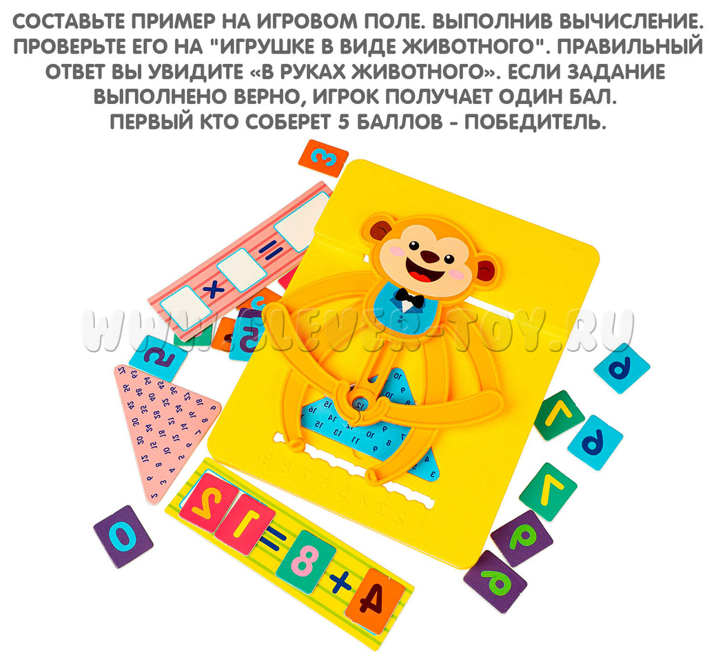Настольная обучающая игра «Считай и умножай» Обезьянка из серии обучение легко и интересно поможет вашим детям разобраться в мире цифр. Игра предназначена для обучения счету детей дошкольного возраста. С Обучающей игрой «Считай и умножай» проведите увлекательный урок арифметики. Веселая обезьянка поможет вам проверить правильное решение.