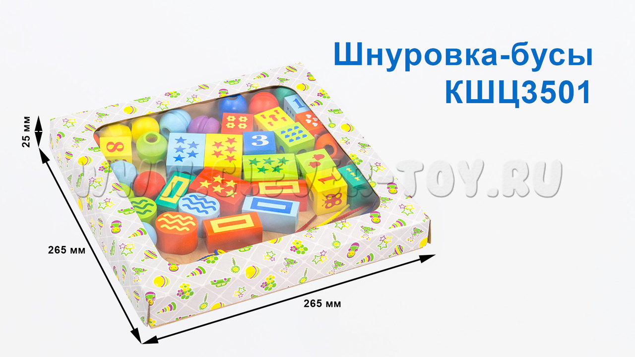 Конструктор "Шнуровочка" (35 деталей, 3 шнура, деревянная коробка)