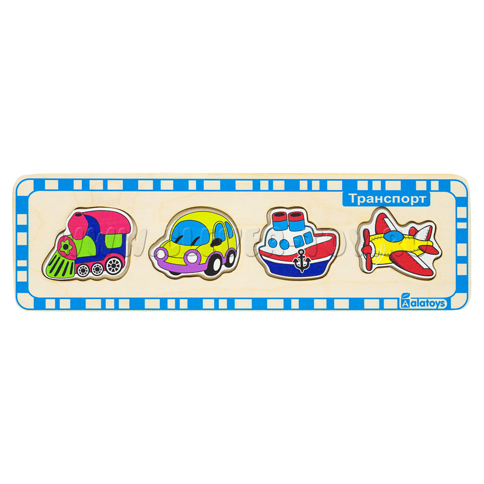 Пазл деревянный "Транспорт" (поезд, машина, корабль, самолет)