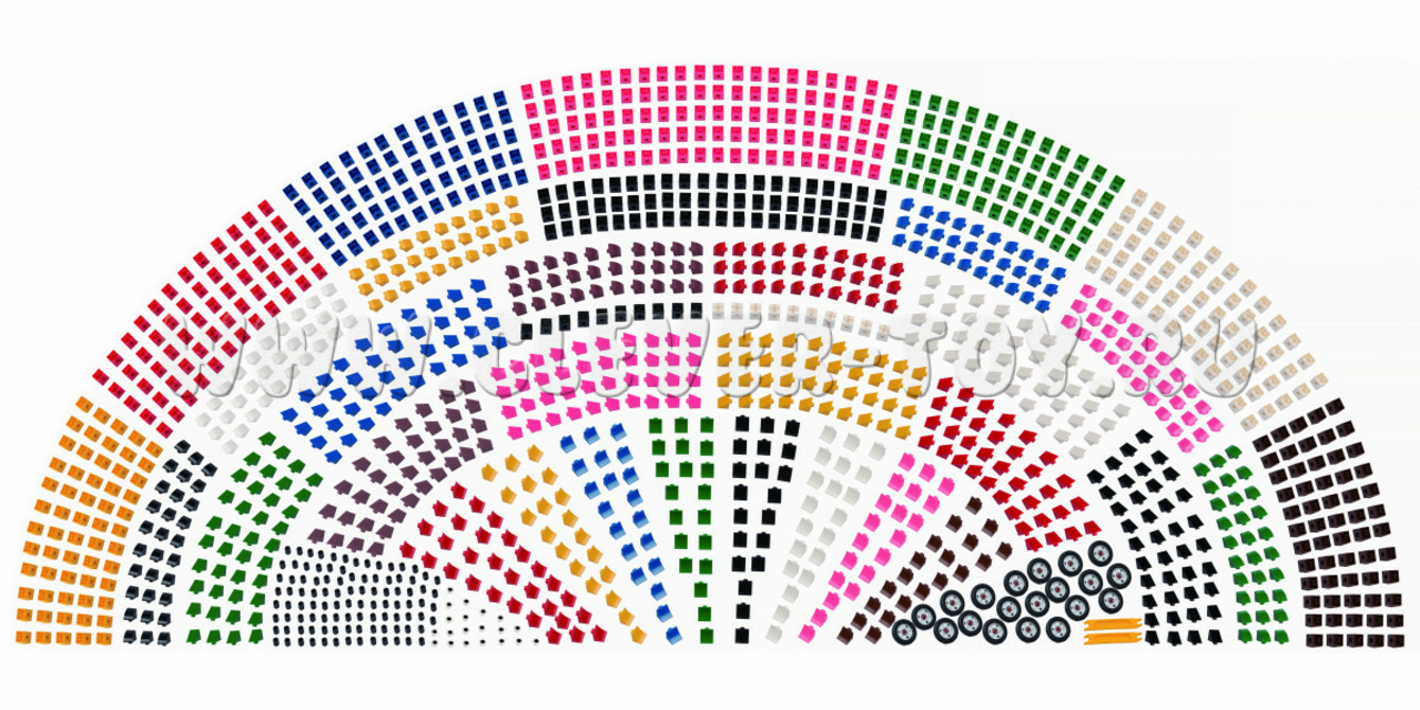 • Набор состоит из множества разноцветных деталей различной формы и размера.