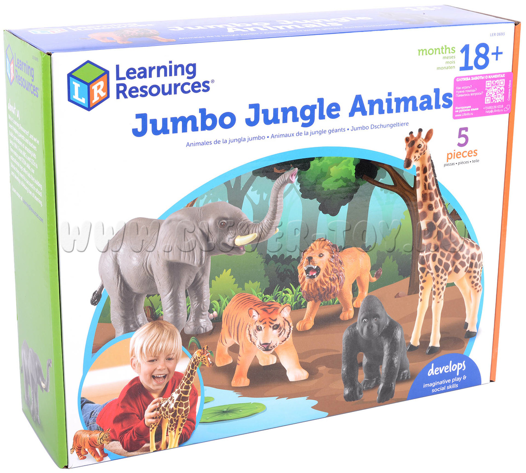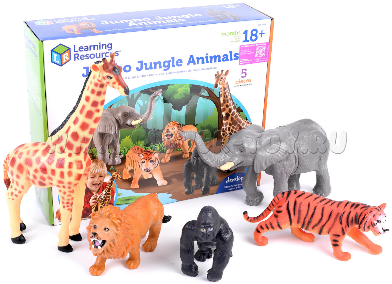 Демонстрационный набор для знакомства с фауной джунглей, способствует развитию речи и тактильных навыков.