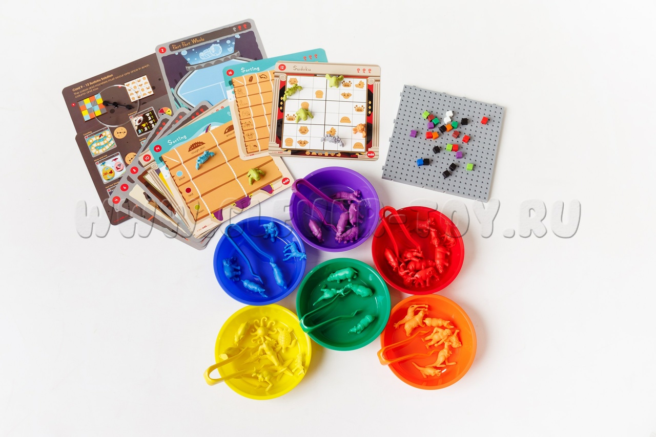200 разноцветных соединяющихся кубиков 1 см (прилагается 25 двусторонних карточек с заданиями)